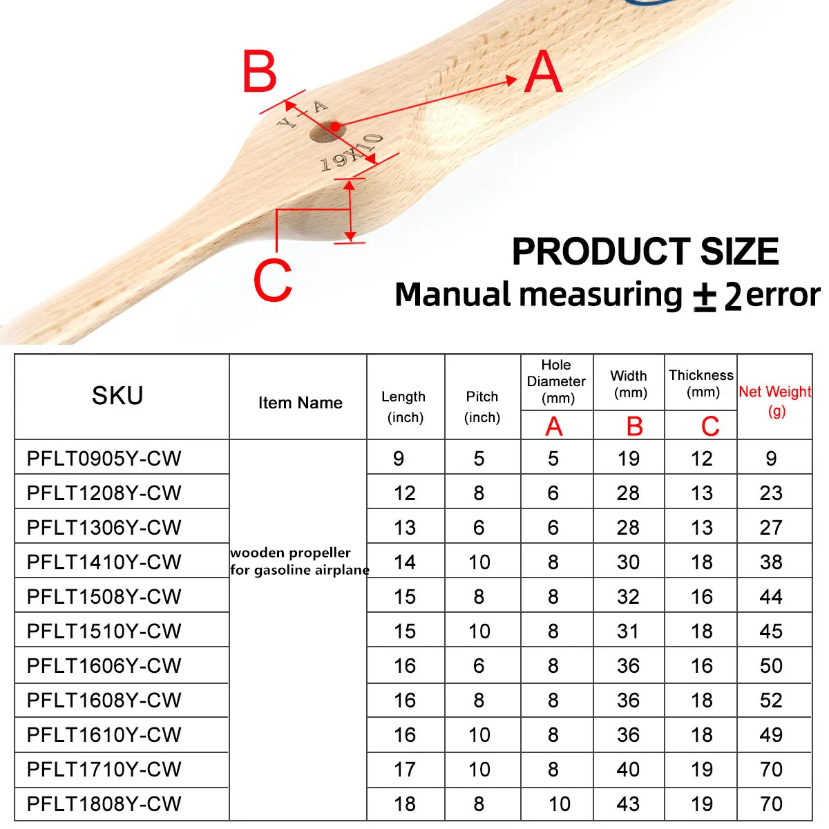 Деревянный пропеллер ZYHOBBY CW для радиоуправляемого самолета на бензине 16x6 16x8 16x10 18x8 18x10 19x8 19x10 20x8 20x10 21x10 22x8 22x10