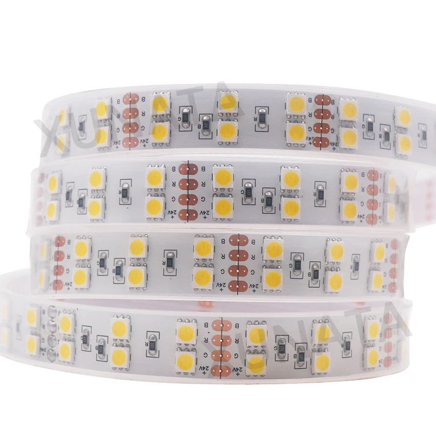 Высокое качество! 5 м DC 12 В 600Led 120ledм Водонепроницаемая SMD 5050 RGB теплая белая светодиодная лента двухрядный гибкий ленточный светильник