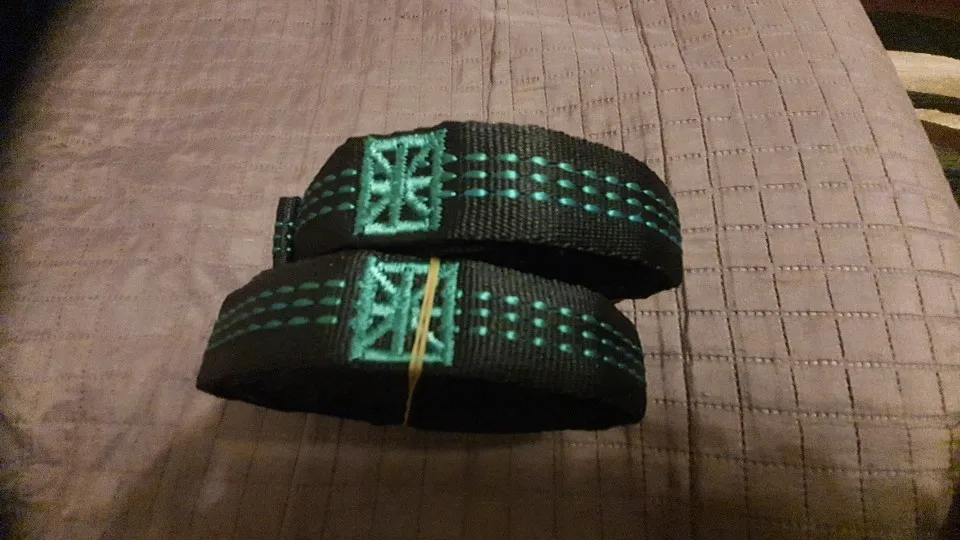 Быстрая доставка. Качество хорошее, и они выглядят лучше, чем на фото. По сравнению с ремешками eno atlas, это, возможно, 80% качества, но по гораздо более низкой цене. Сумка для переноски немного слишком маленькая, что раздражает, так как она не подходит. Было бы очень легко сделать сумку немного больше. Они кажутся прочными и хорошо держат мой гамак.