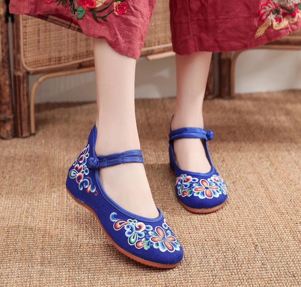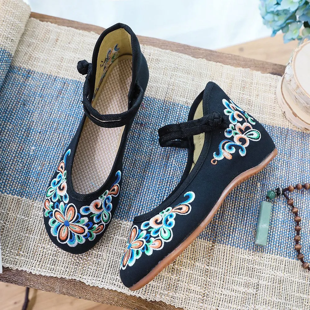 Женские хлопковые туфли с вышивкой Veowalk, Туфли Мэри Джейн на плоской подошве, удобные женские туфли для прогулок, большие размеры 10 11, черные, синие