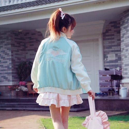 BoBON21 бейсбольное пальто принцессы, бейсбольное пальто оригинального дизайна с вышивкой крыльев Ангела, сердца, розового, синего, фиолетового цветов, C1248