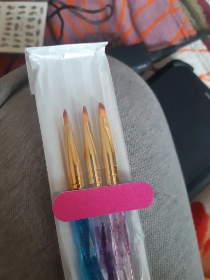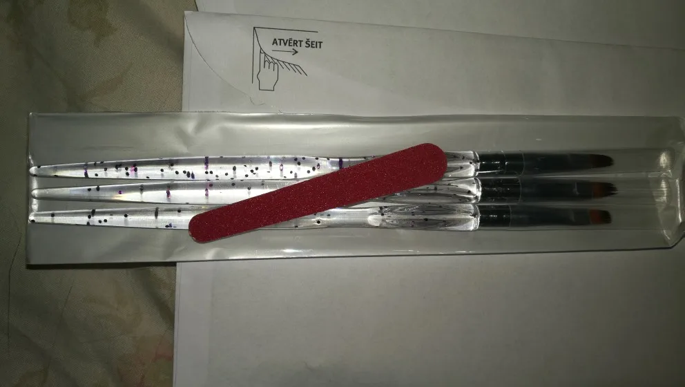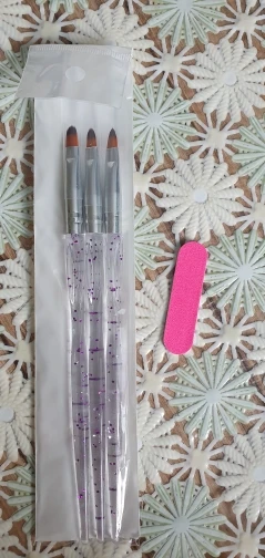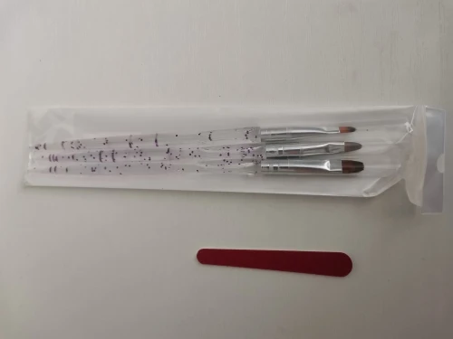 хорошие кисточки. язычки разного размера. как для базы так и для мягкого полигеля подойдёт. ручка у кисти специальной, удобной формы, для трех пальцев - не круглая а более треугольная. продавец положил подарок мини пилку.