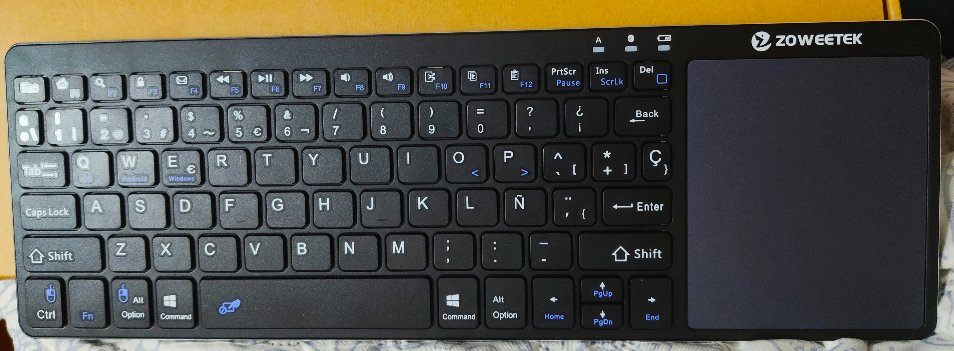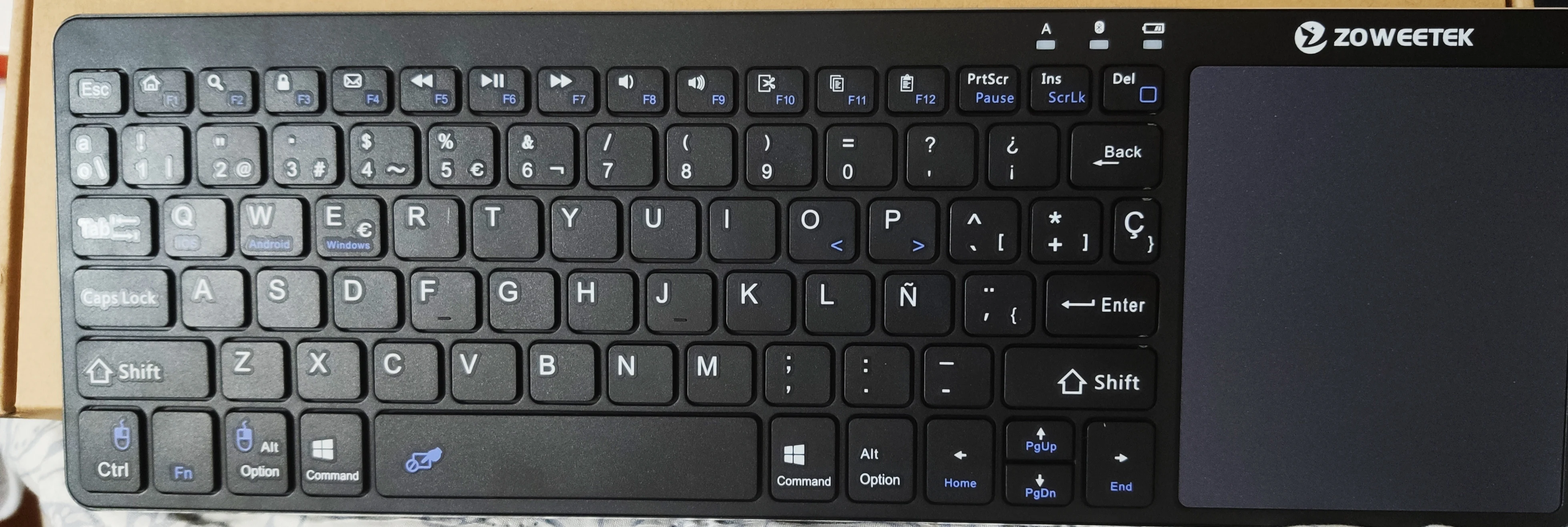 Bluetooth клавиатура на испанском языке со всеми испанскими буквами, что является удивительным. Они работают хорошо и прекрасно, они никогда не перестают работать, и это отличная цена ornel, которая имеет. Я рекомендую его. Pi прослужит им долгое время, и у меня всегда есть. Так что все идеально, и доставка была muybrapido