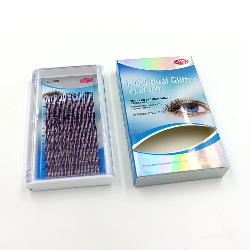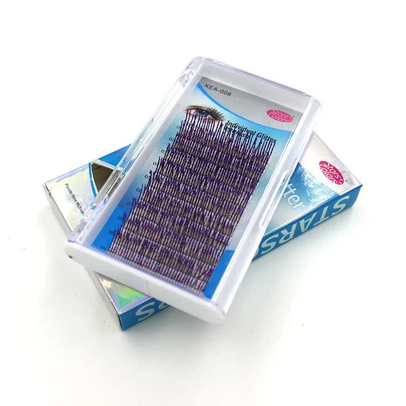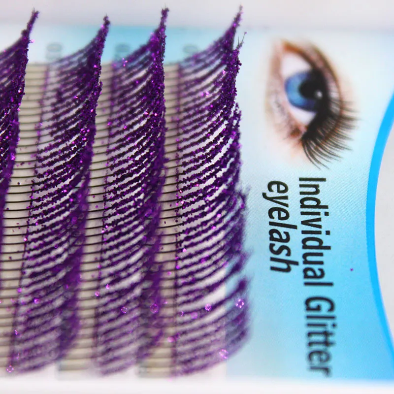 Совершенно новые модные блестящие мерцающие ресницы Профессиональные Индивидуальные Накладные ресницы Фиолетовый макияж глаз 12 полосок