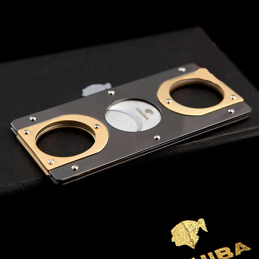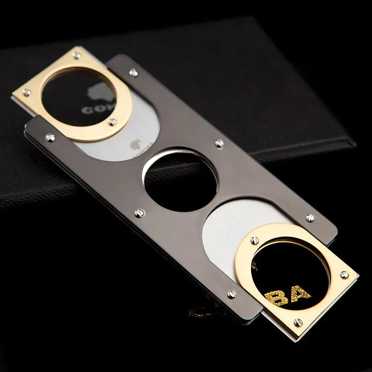 COHIBA карманные гаджеты с золотым покрытием из нержавеющей стали с двойными лезвиями, нож Zigarre, кубинские ножницы для сигар 163GH