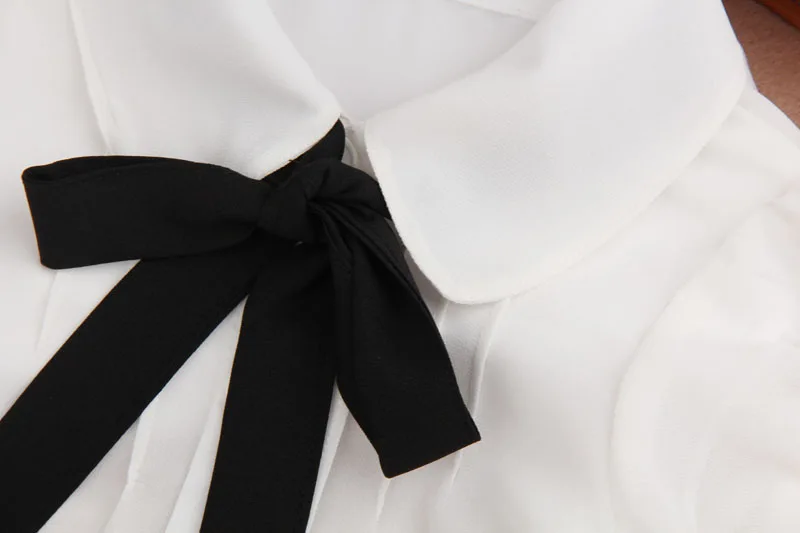 Блузка для девочек на осень-зиму детская одежда для маленьких детей, белые рубашки для девочек, топы с длинными рукавами и бантом шифоновые школьные Блузы 2T-16Y