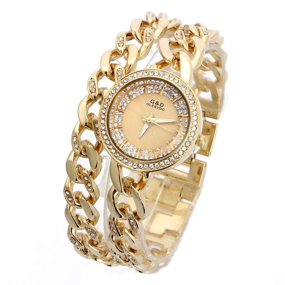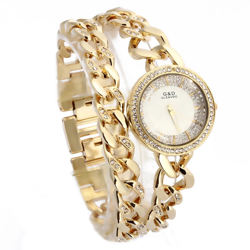 2018 G D Золото роскошные женские часы-браслет часы Женские кварцевые наручные часы из нержавеющей стали Стразы Reloj Mujer Relogio Feminino