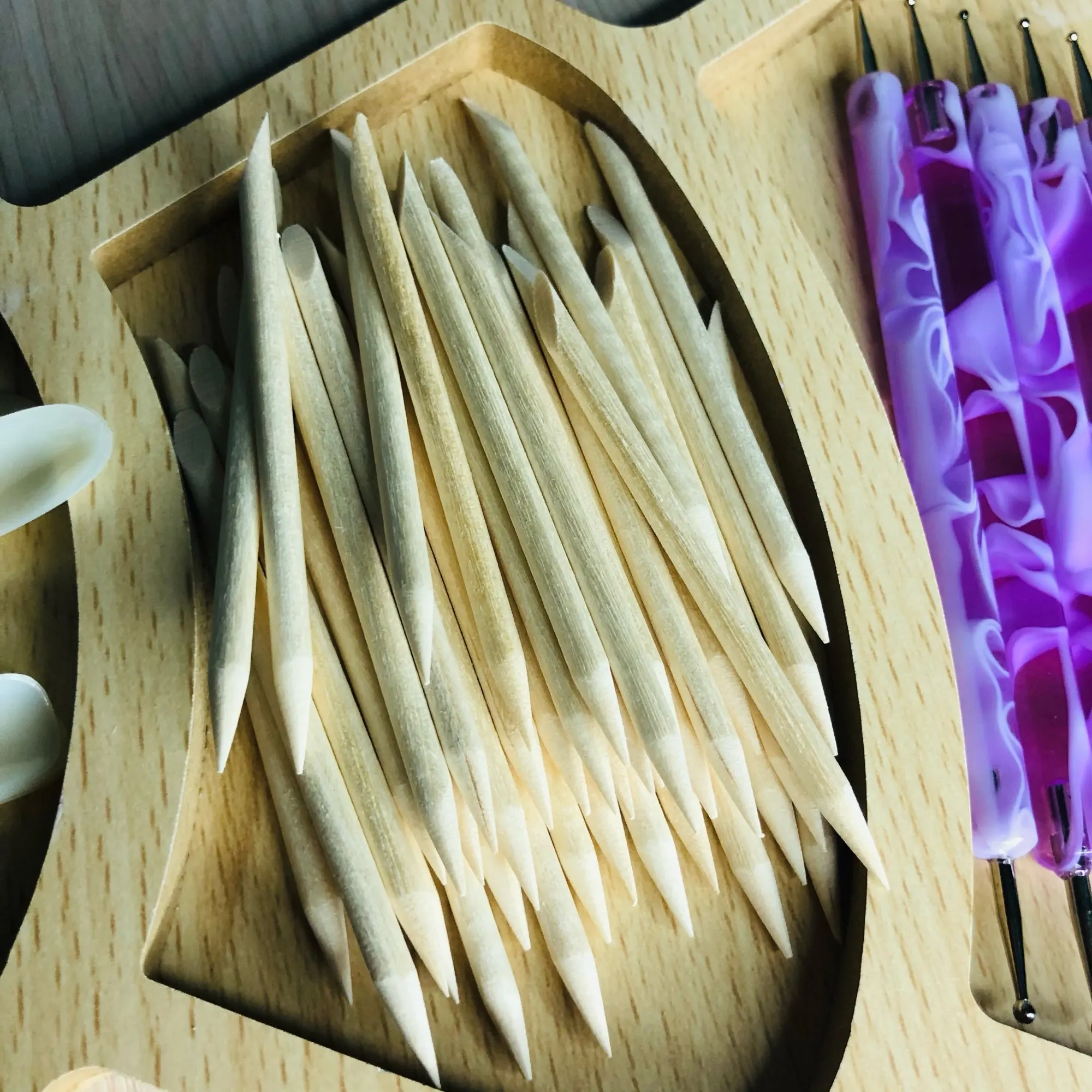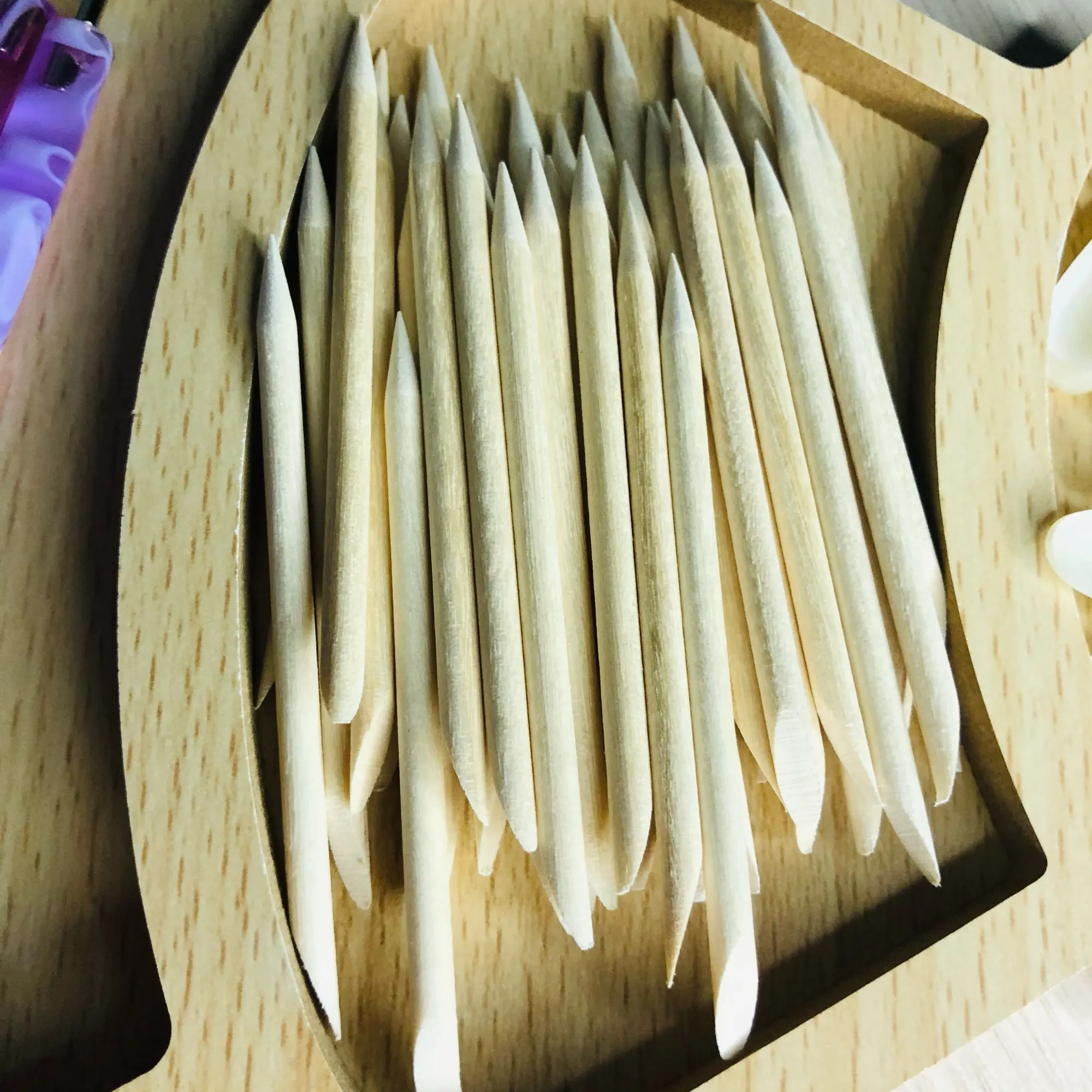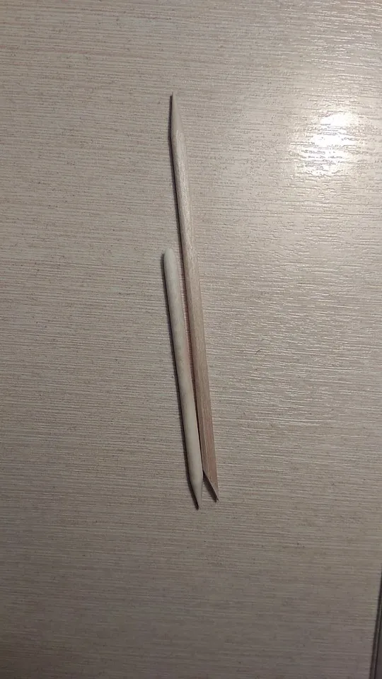 Деревянные палочки, коротенькие, как раз такие как нам надо было, удобные в работе, спасибо большое продавцу.