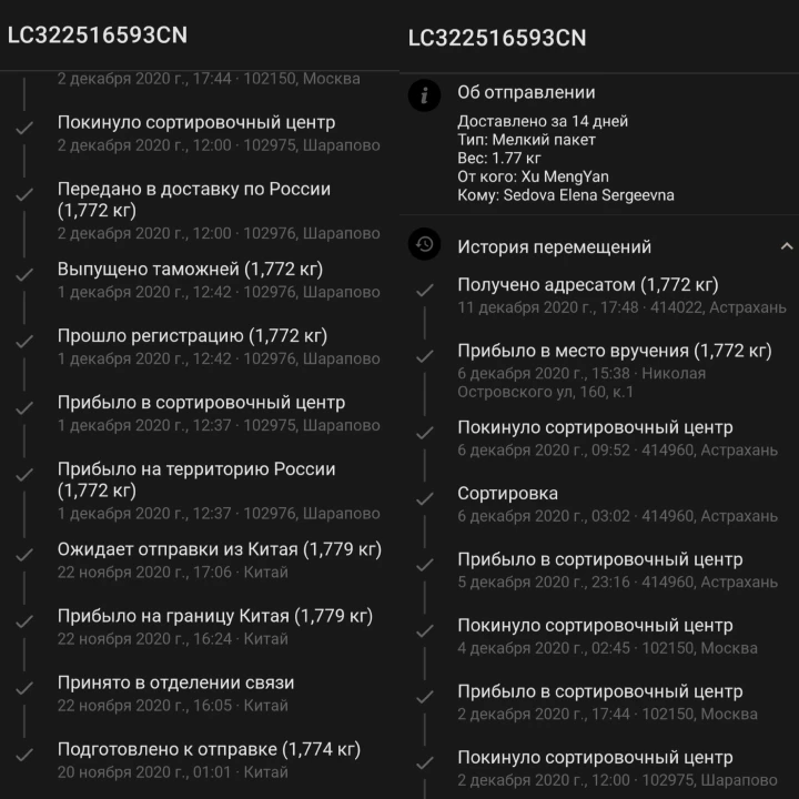 Страна: RU Доставка: Cainiao Super Economy 14.12.2020