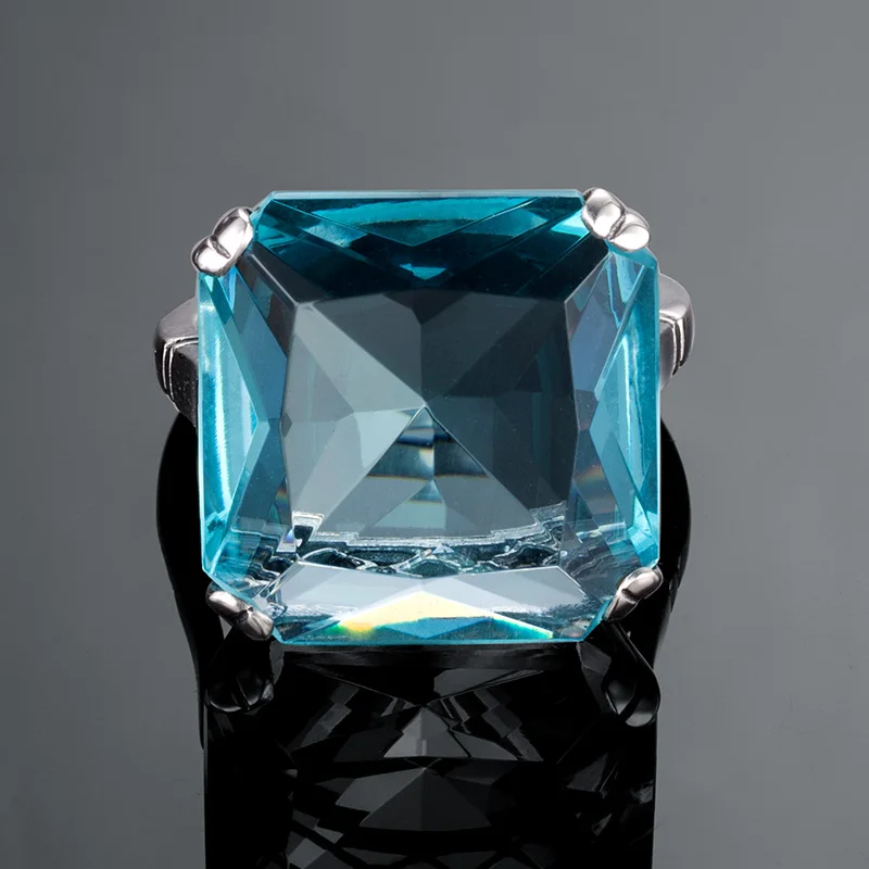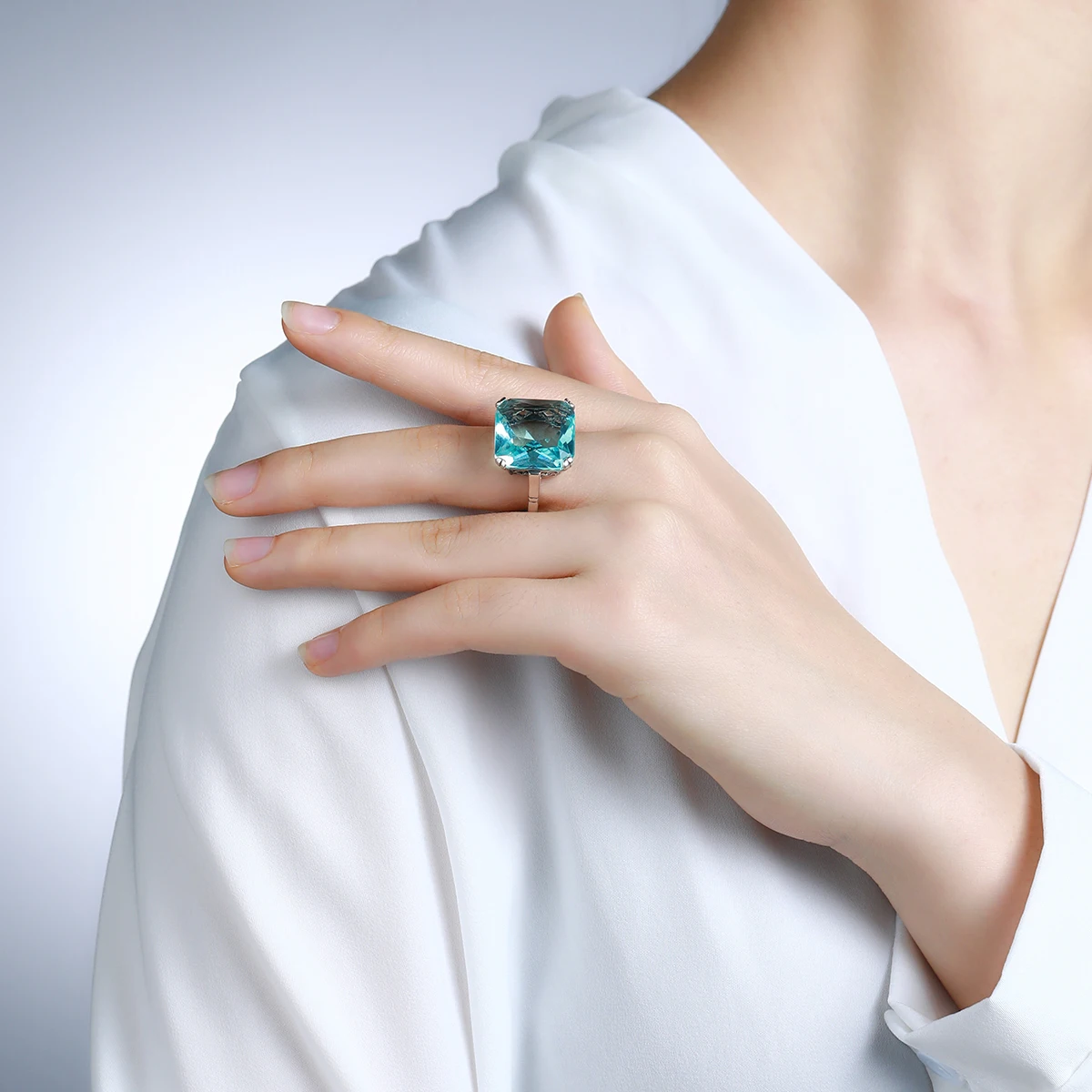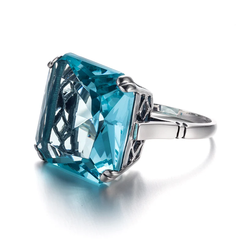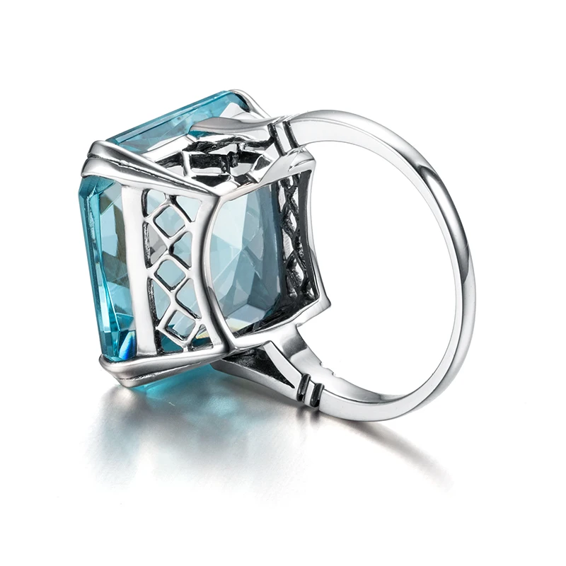 Женское кольцо из серебра 925 пробы, с квадратным аквамарином, 17 х17 мм