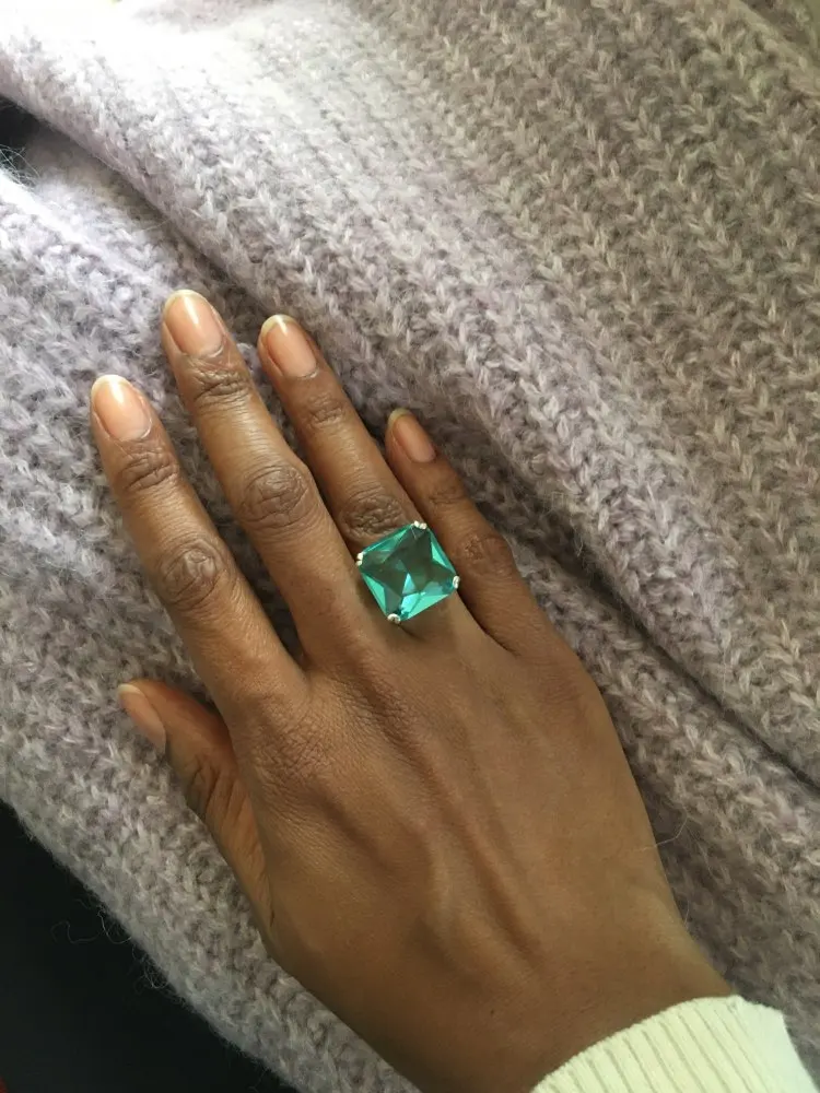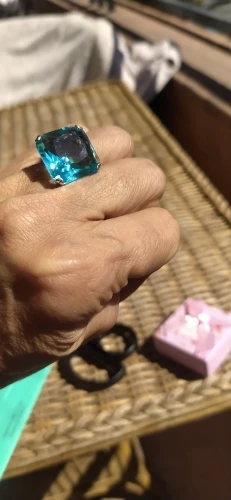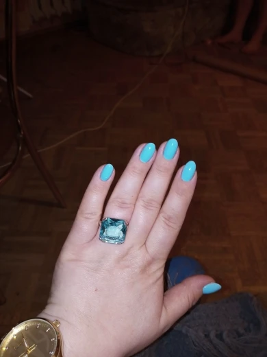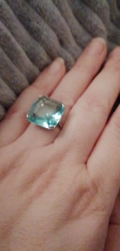 Я доволен этим кольцом, хотя цвет в реальной жизни более бирюзовый, чем пудровый синий, он выглядит на фото. Они даже прислали мне бесплатную серебряную ткань для полировки!
