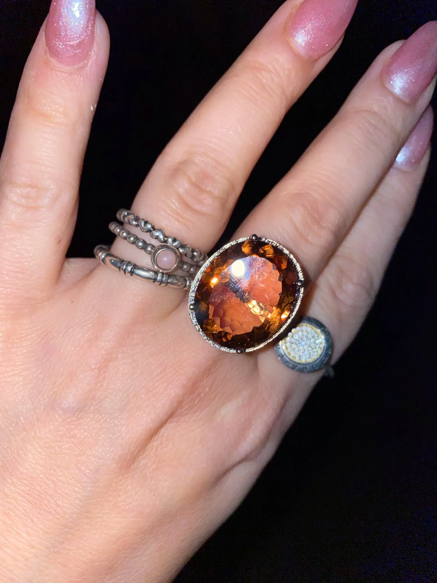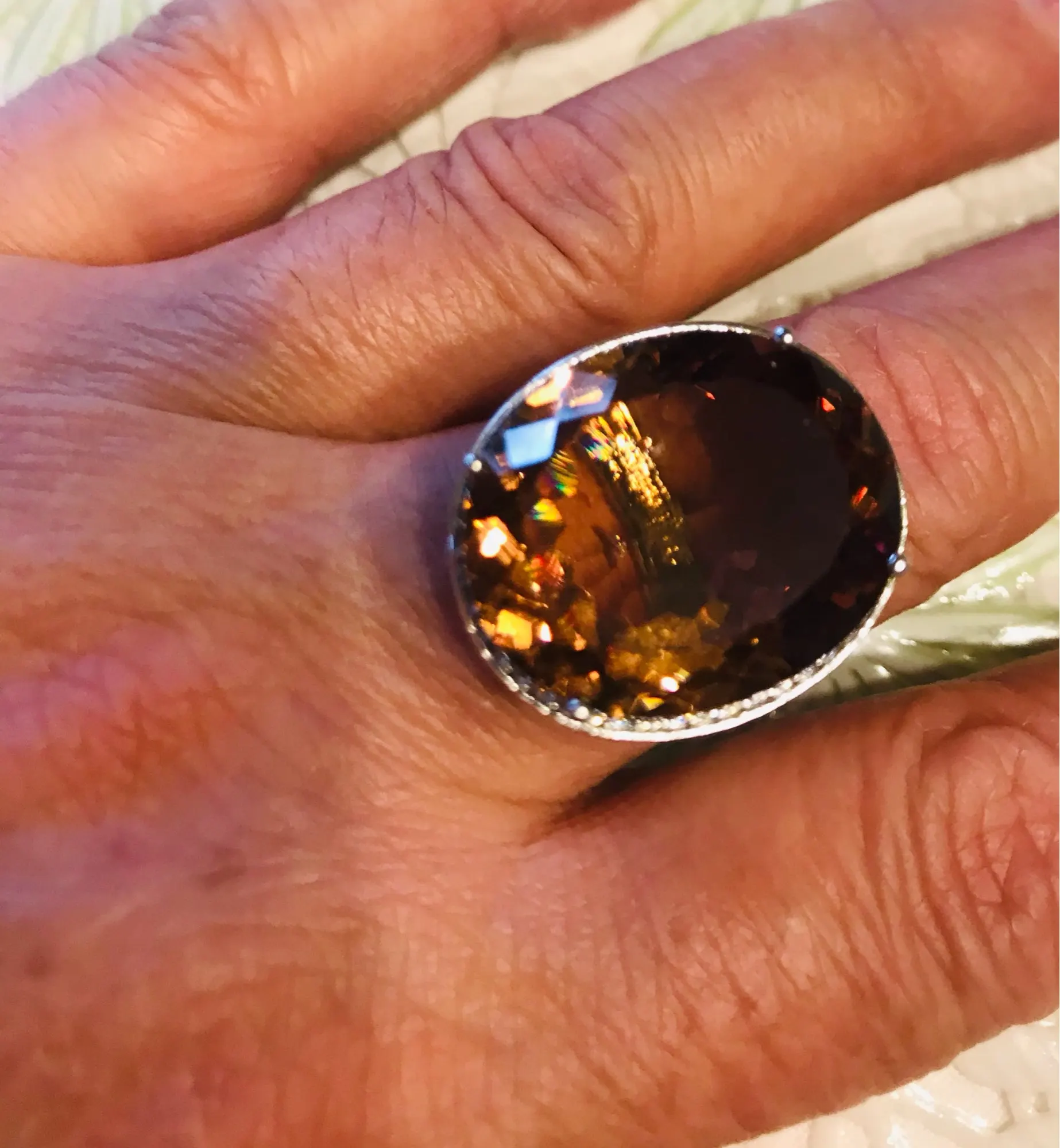 Прикольно. Камень меняет цвет от жёлтого до сиреневого. Милое, аккуратное кольцо, хотя и крупноват камень для моей руки