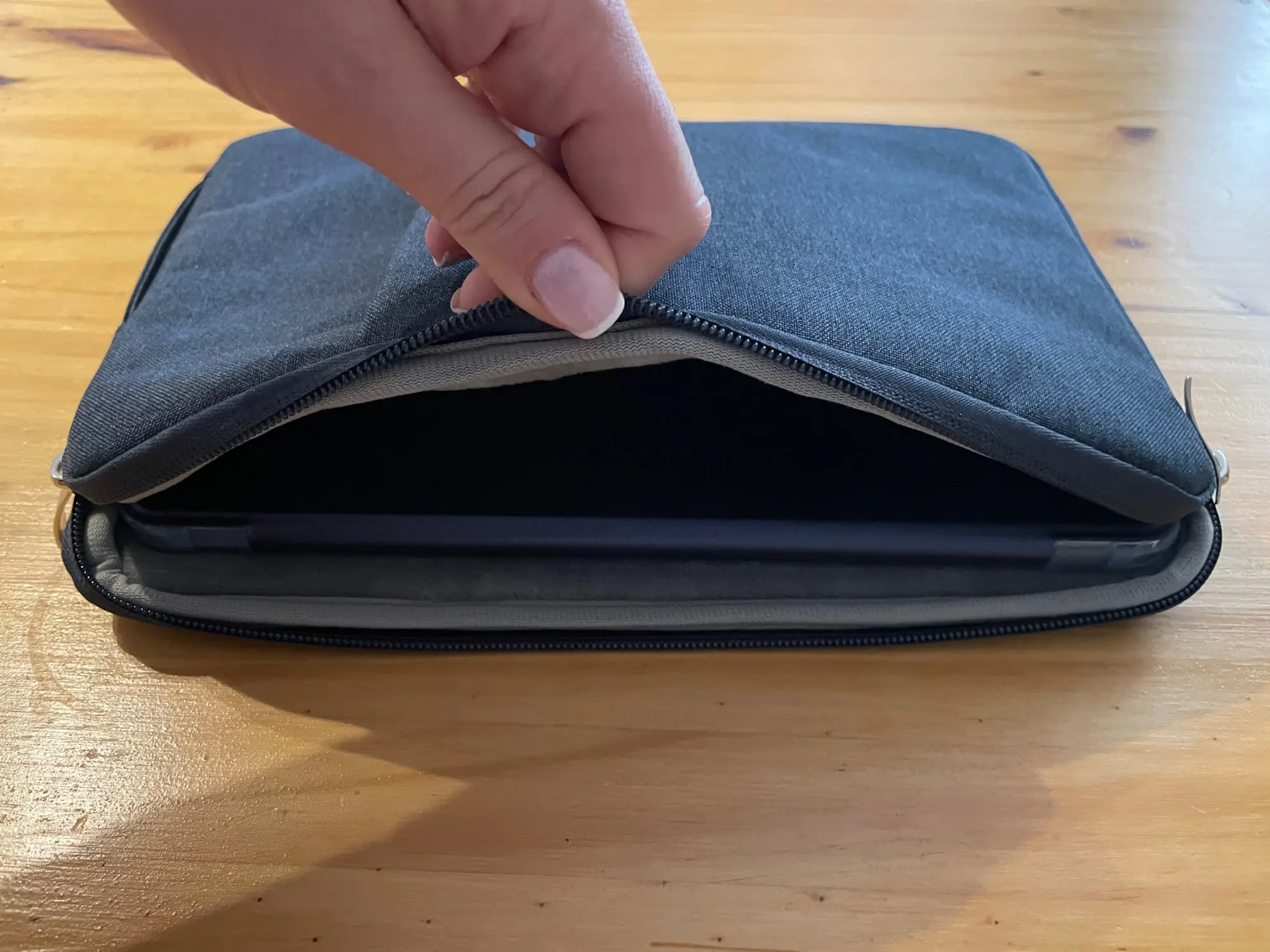 Piękny pokrowiec, porządnie wykonany, mieści iPada 10.2 8 gen który jest jeszcze w dodatkowym case z sylikonowymi obramowaniami. Polecam włożyć do kieszonki tą płaską ładowarkę starego typu, ta na USB c trochę się odznacza