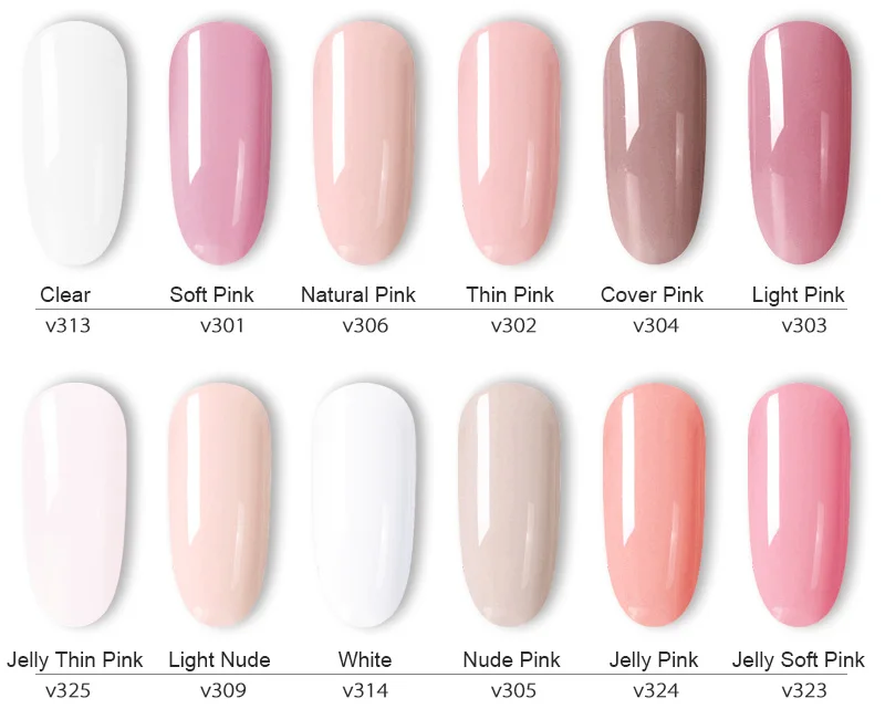 гель вязкий, но самовыравнивается. цвета приятные, v303 очень натуральный розовый. под френч бомба. качество гелей супер. просыхают в лед лампе 48 ват хорошо, но слой не толстый. если толстый то не просохнет. доставка долгая. 1.5 месяца.