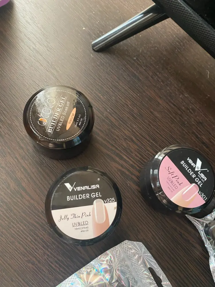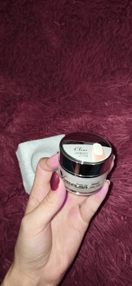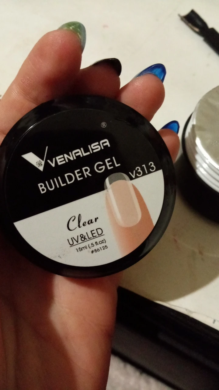 Хороший гель для наращивания, толстый, но через некоторое время вмещает в себя красивые линзы на ногтях.