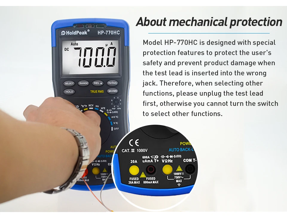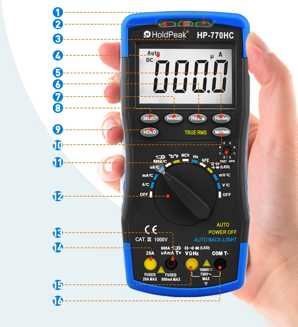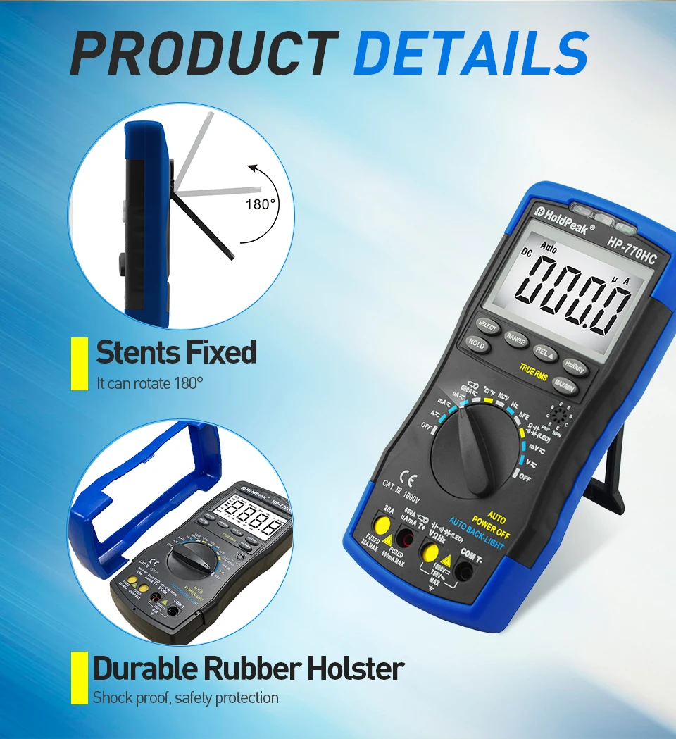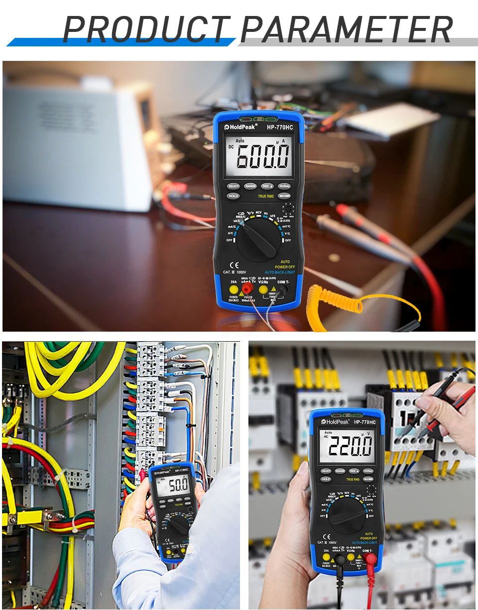 Цифровой мультиметр HP-770HC True RMS с автоматическим выбором диапазона и индикатором напряжения, измерением температурычастотырабочего цикла
