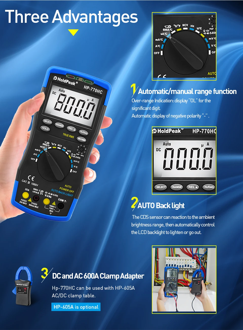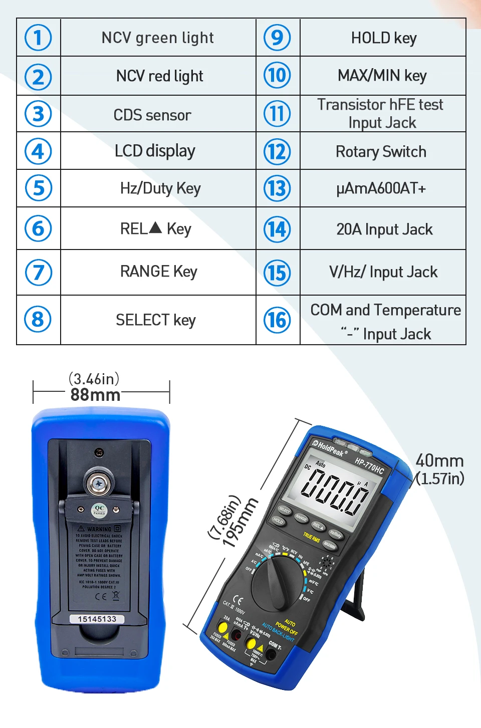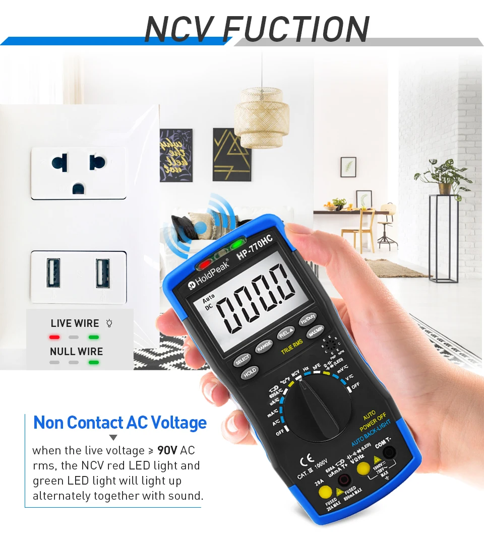 Цифровой мультиметр HP-770HC True RMS с автоматическим выбором диапазона и индикатором напряжения, измерением температурычастотырабочего цикла