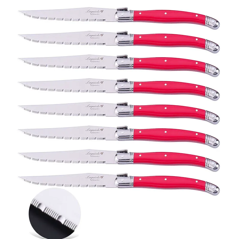 8 шт. из нержавеющей стали Laguiole ножи для стейка набор разноцветная ручка кухонные ножи стол нож для стейка столовые приборы Рождественский набор столовых приборов