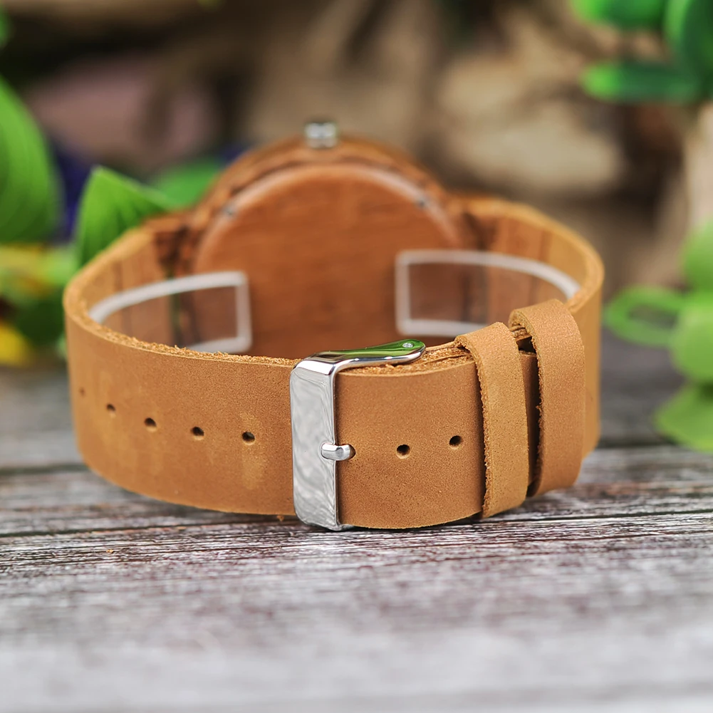 Мужские кварцевые часы BOBO BIRD с ремешком из натуральной коричневой воловьей кожи, упакованные в деревянную подарочную коробку