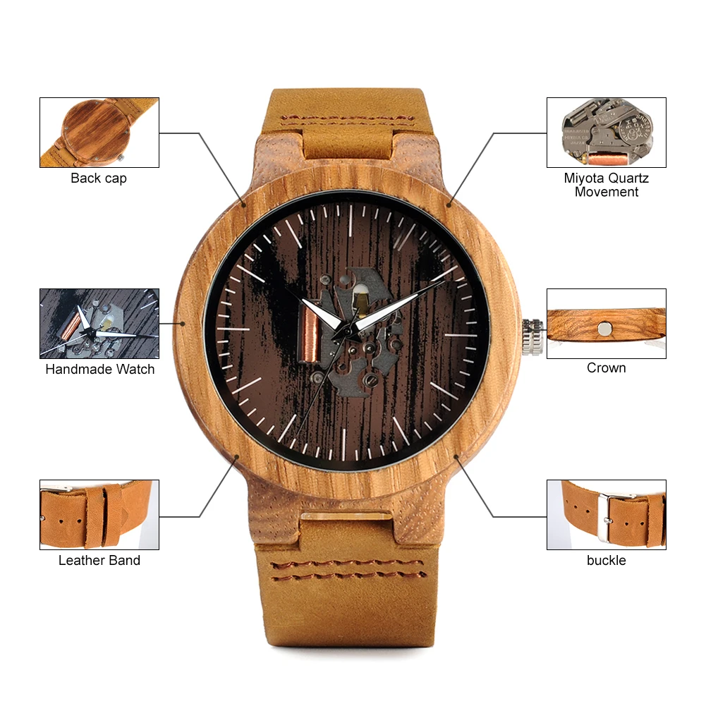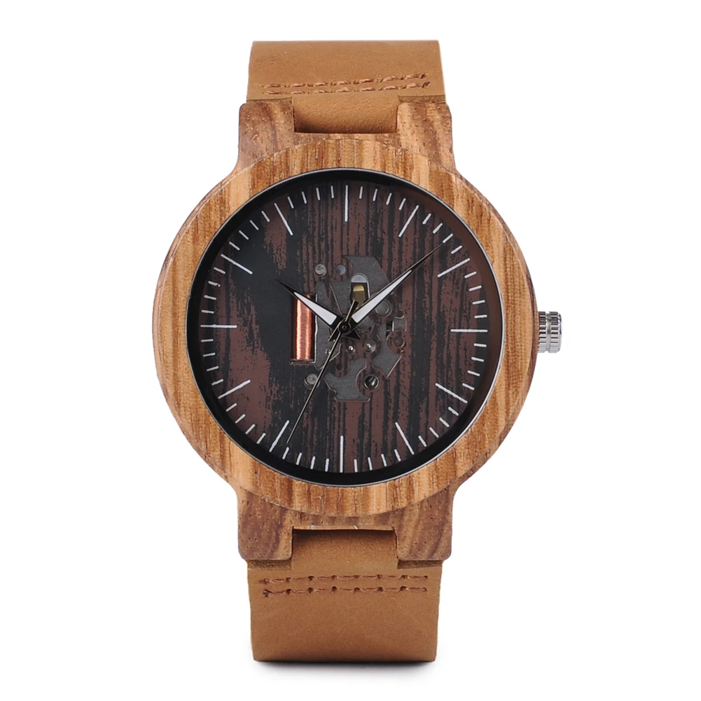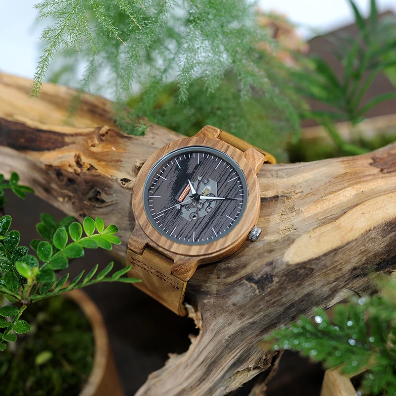 Часы BOBO BIRD мужские, деревянный кожаный ремешок, кварцевые часы ...
