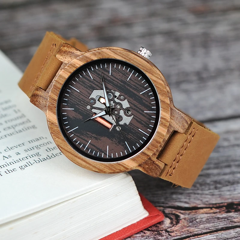 Часы мужские кварцевые с кожаным ремешком, деревянные, 2020