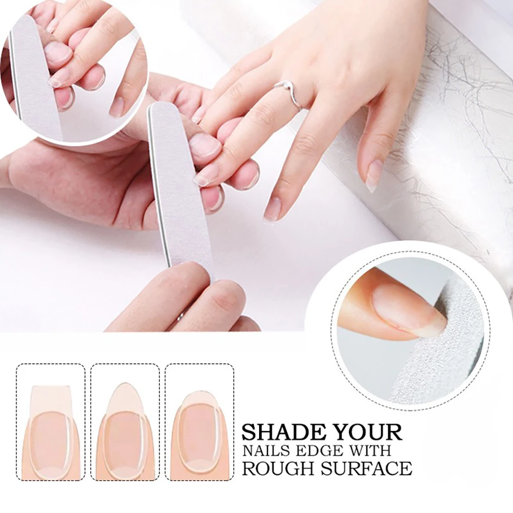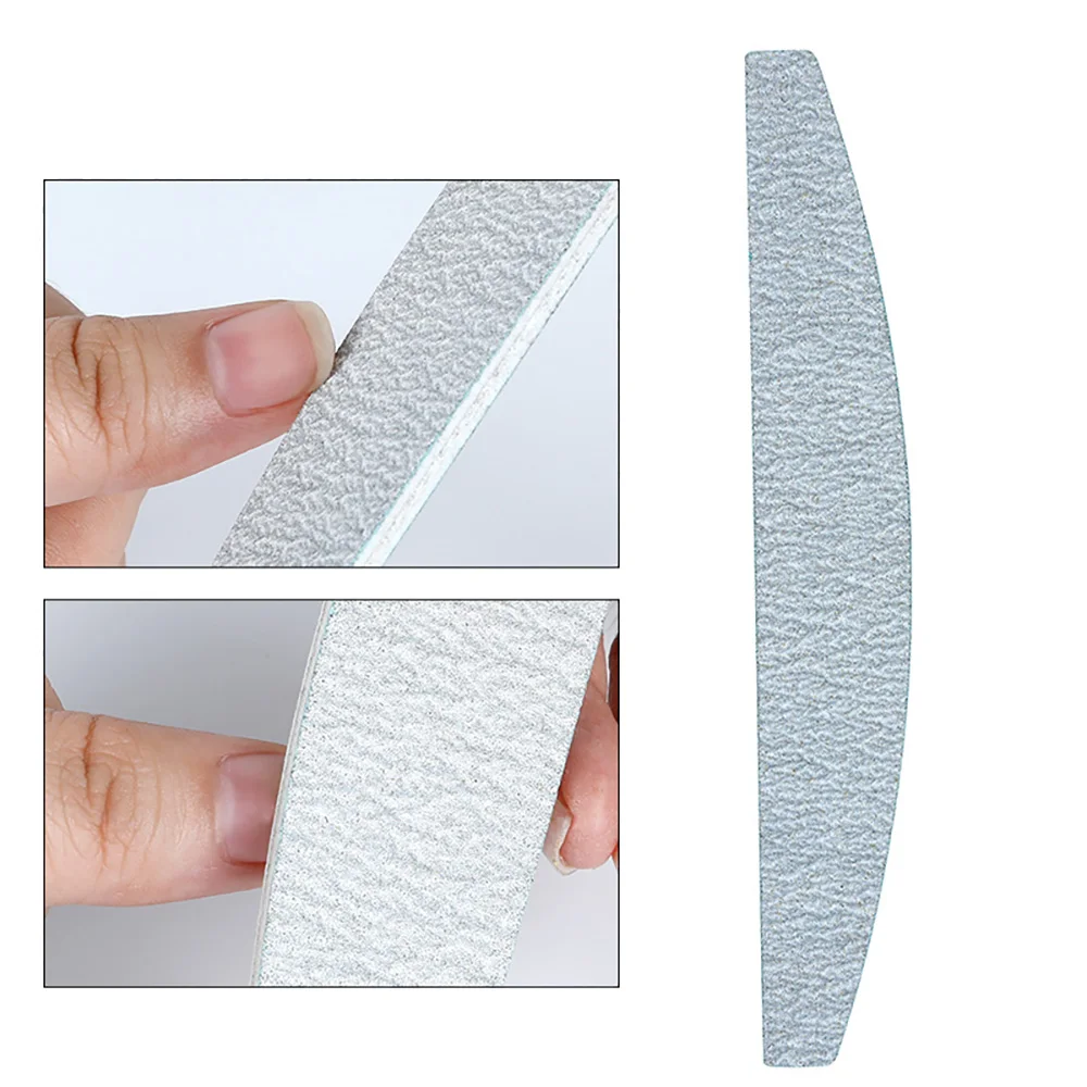 Почему мы это говорим?Потому что это необходимые инструменты для дизайна ногтей для подачи ногтей перед обработкой ногтей/наращивание ногтей/маникюрные процедурыМожно использовать для нанесения натуральных ногтей, накладных ногтей, наращивания ногтей и т. д.Идеально подходит как для профессионального использования, так и для личного использования.Форма Полумесяца удобнаЗернистость 100 и 180, также мы можем широко использовать