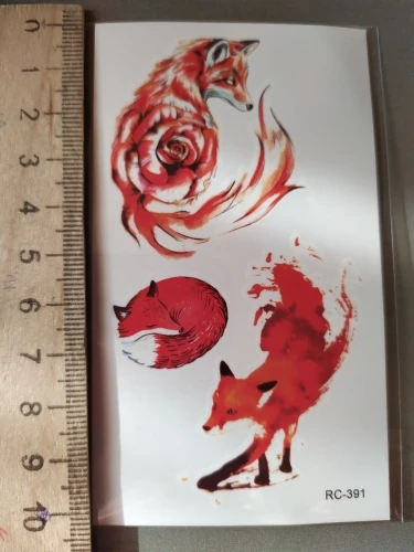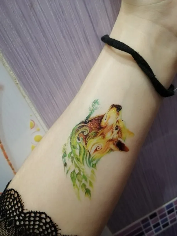 Временная татуировка 10X6 см, ревущая голова волка и тело лисы