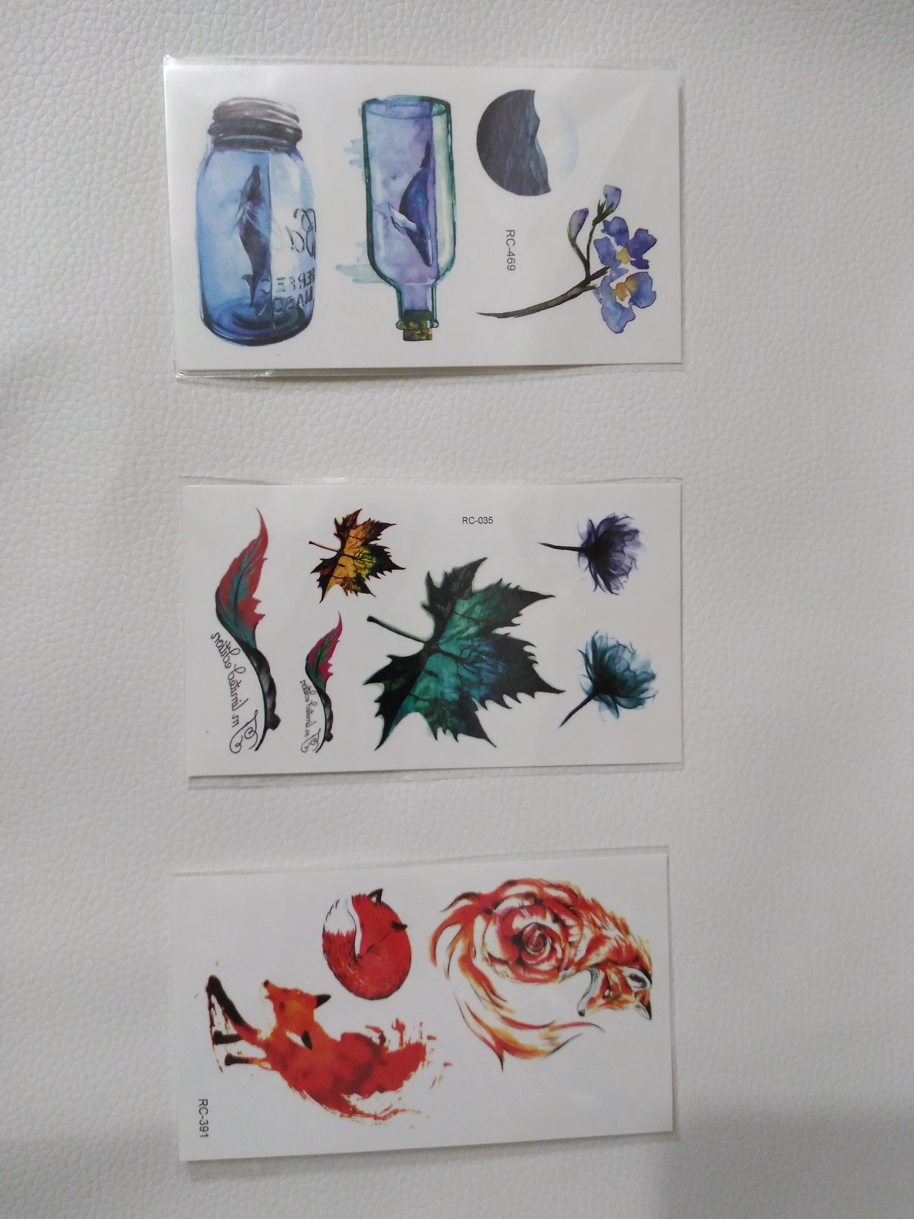 Тату хорошие; яркий, четкий рисунок. Клеятся без проблем. Я клеила водой на пластик (затылок Блайз), быстро, просто без проблем. Держится, но планирую еще покрыть лаком. Описанию соответствуют, пришли быстро в объединенном заказе. Упакованы были в пакет с уплотнителем (возможно картон плотный) чтобы не помялось + каждый листок с тату (заказывала 3 шт. у этого продавца) в отдельном пакетике прозрачном.