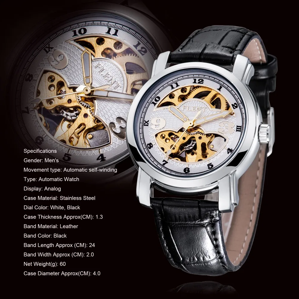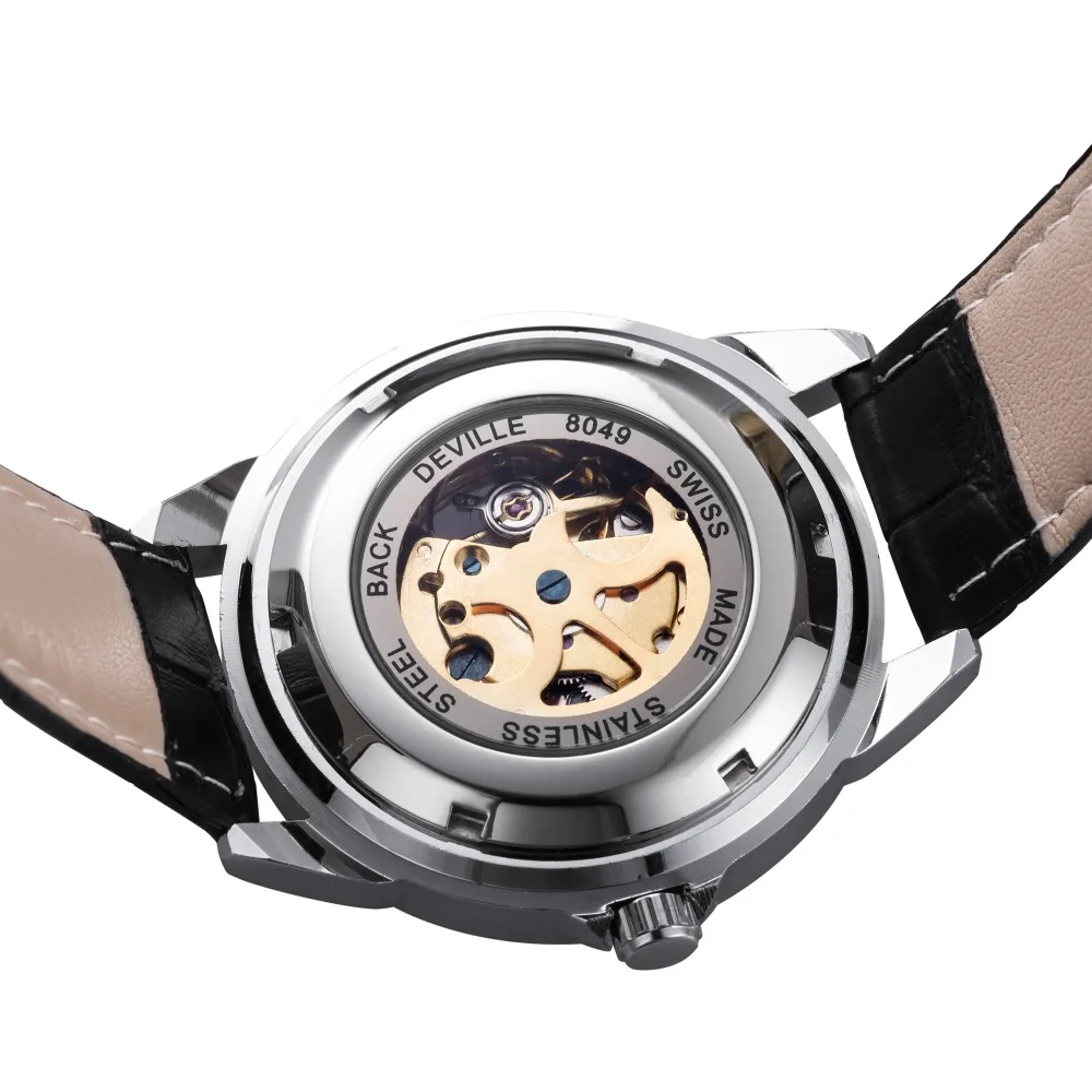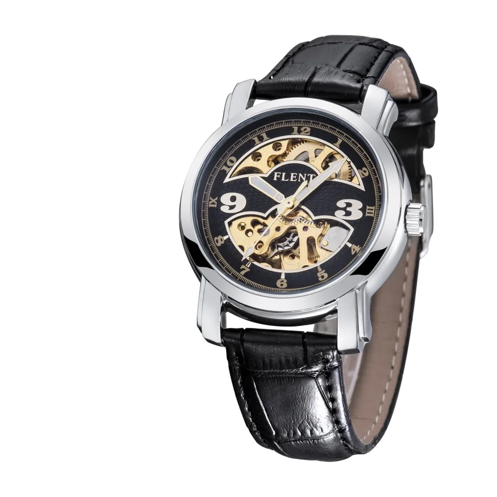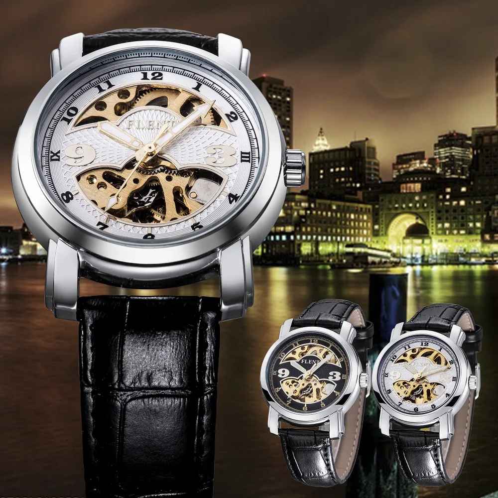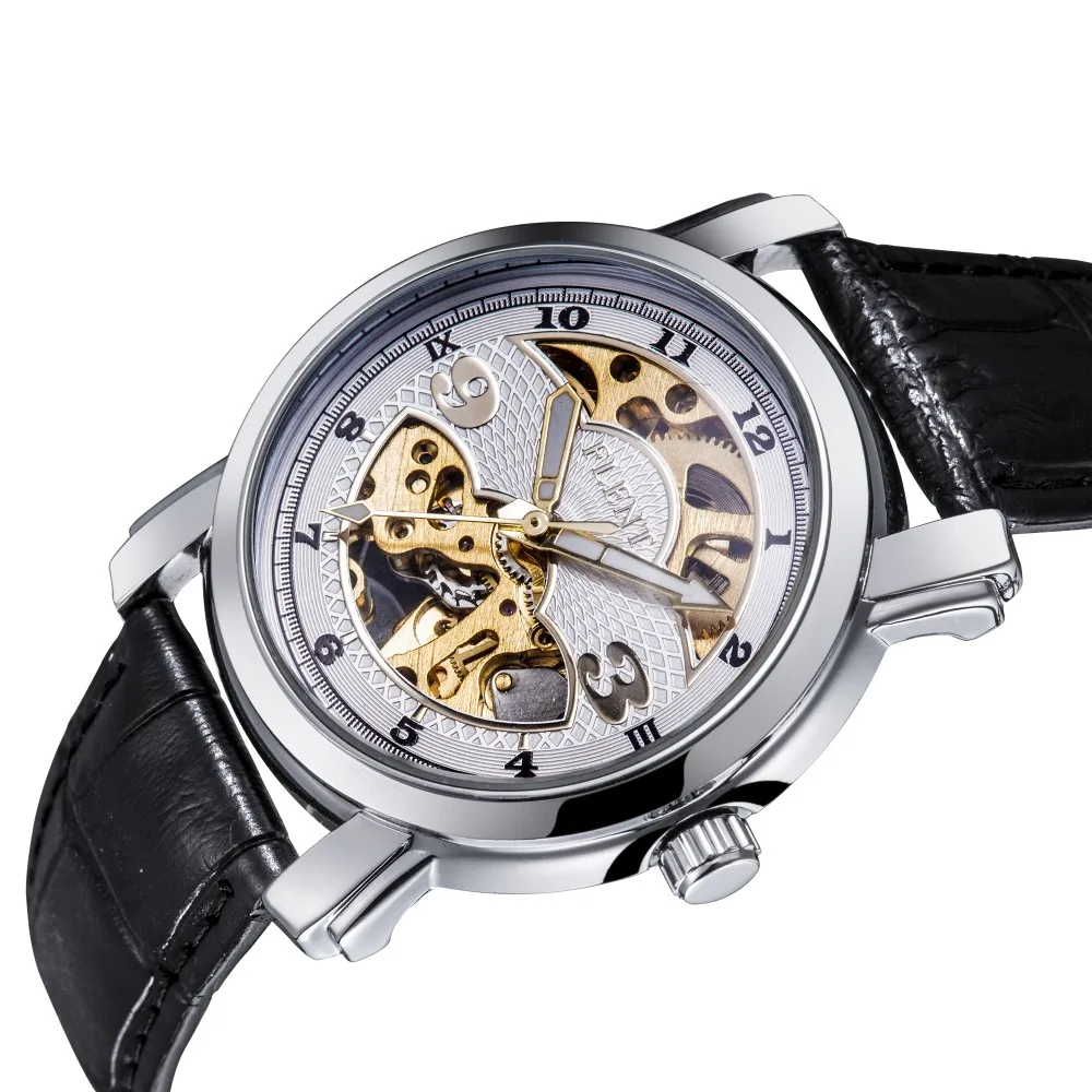 Мужские автоматические часы, модные часы-скелетоны, механические наручные часы с кожаным ремешком