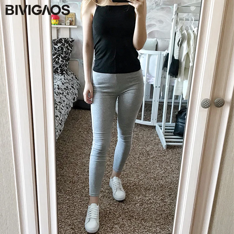 BIVIGAOS женские новые повседневные Леггинсы боковые белые полосатые эластичные хлопковые Легинсы Брюки Женская одежда модные леггинсы для женщин Спортивные бега леггинсы icon star icon star icon star icon star icon star