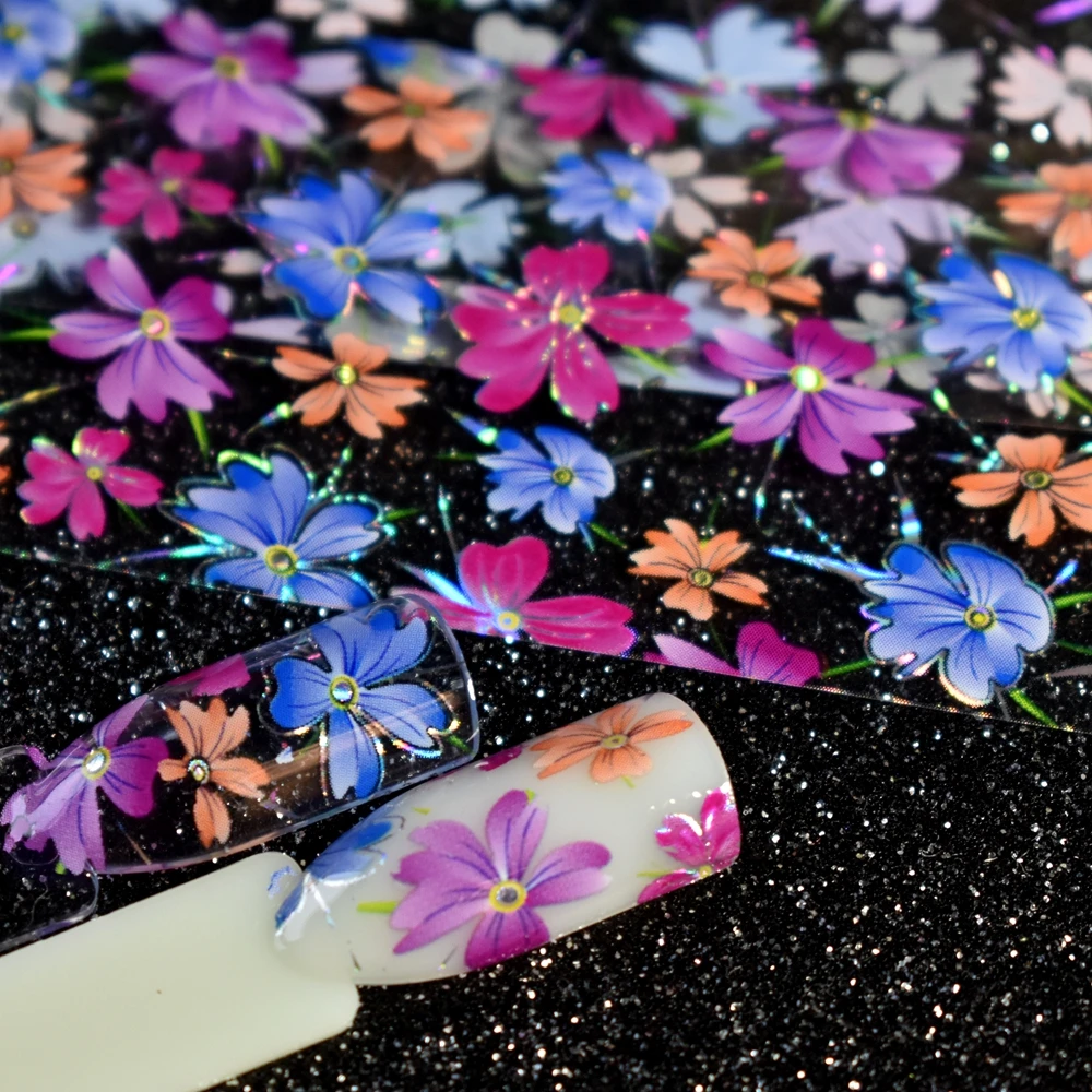 Переводная Фольга для ногтей, наклейка для ногтей, наклейка для украшения, дизайн «сделай сам», Цветочная серия, розовый, красный, синий, зеленый цветок, оптом GL118