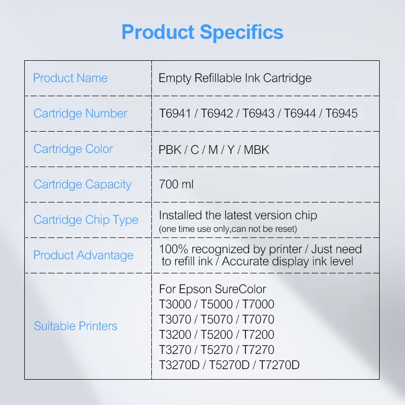 В настоящее времяНаши продукты включают в себя широкоформатный чернильный картридж, настольный чернильный картридж, СНПЧ, чипы, чипResetter, Чип декодер и т. Д...