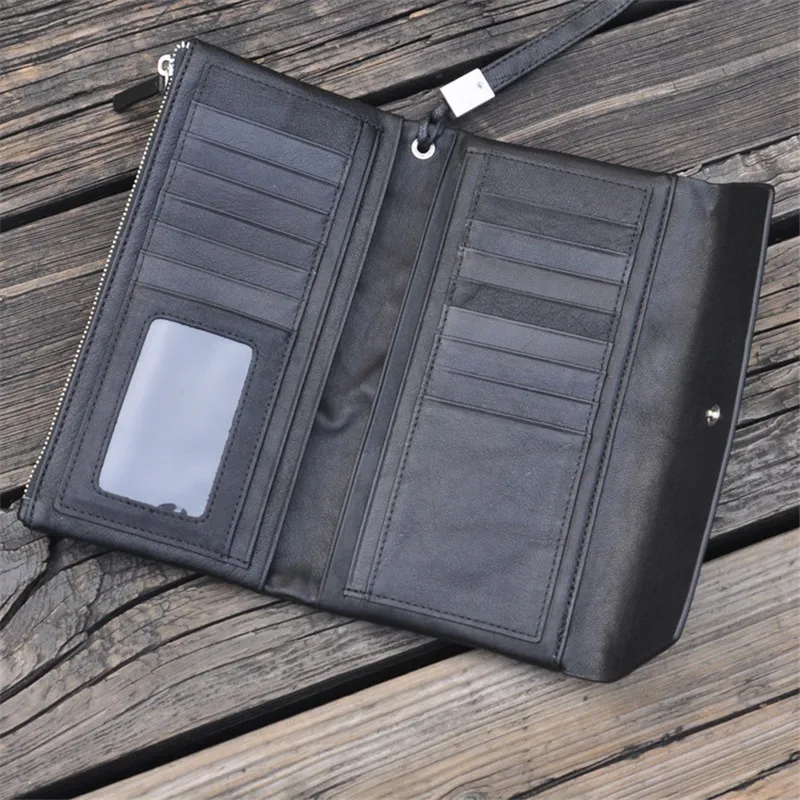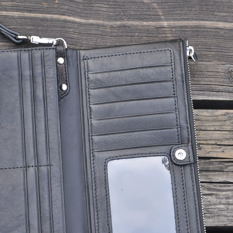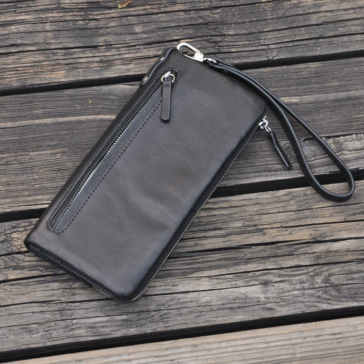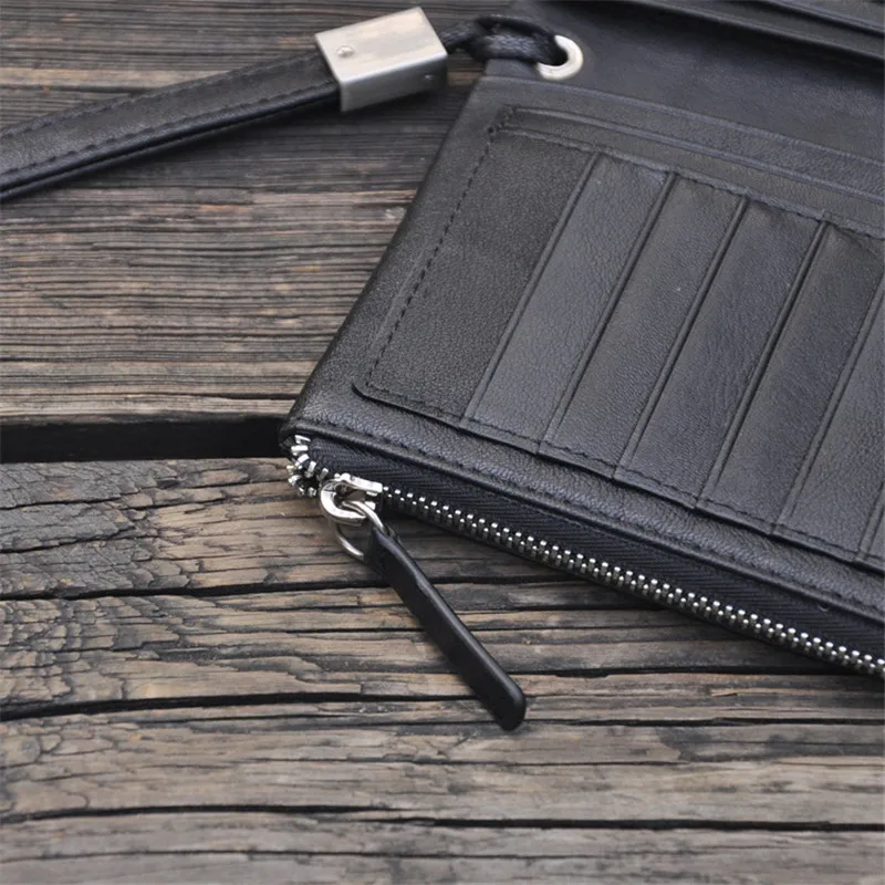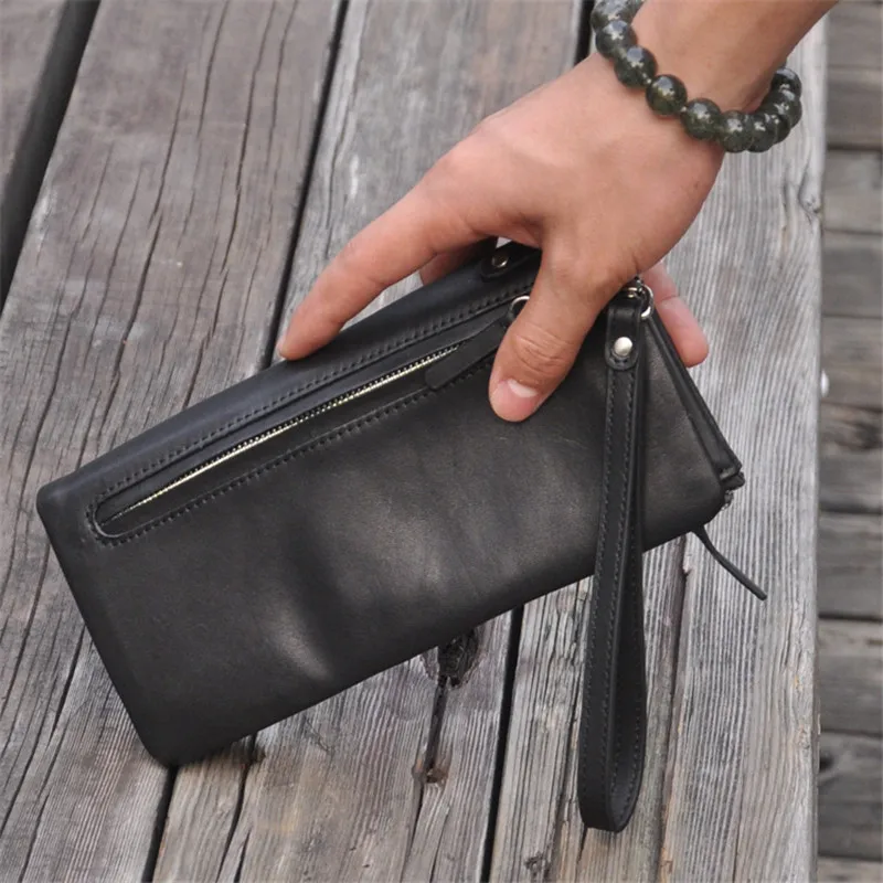 Мужские кошельки из натуральной кожи, визитница, держатель для карт, портмоне, карман, мужской длинный кошелек, черный клатч на молнии