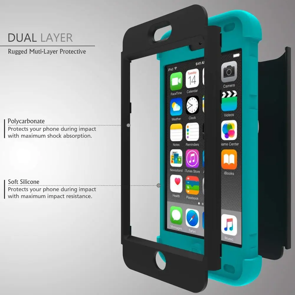 Чехол для iPod Touch 7Touch 6, ударопрочный противоударный полноразмерный защитный чехол с двухслойным жестким поликарбонатом и силиконом