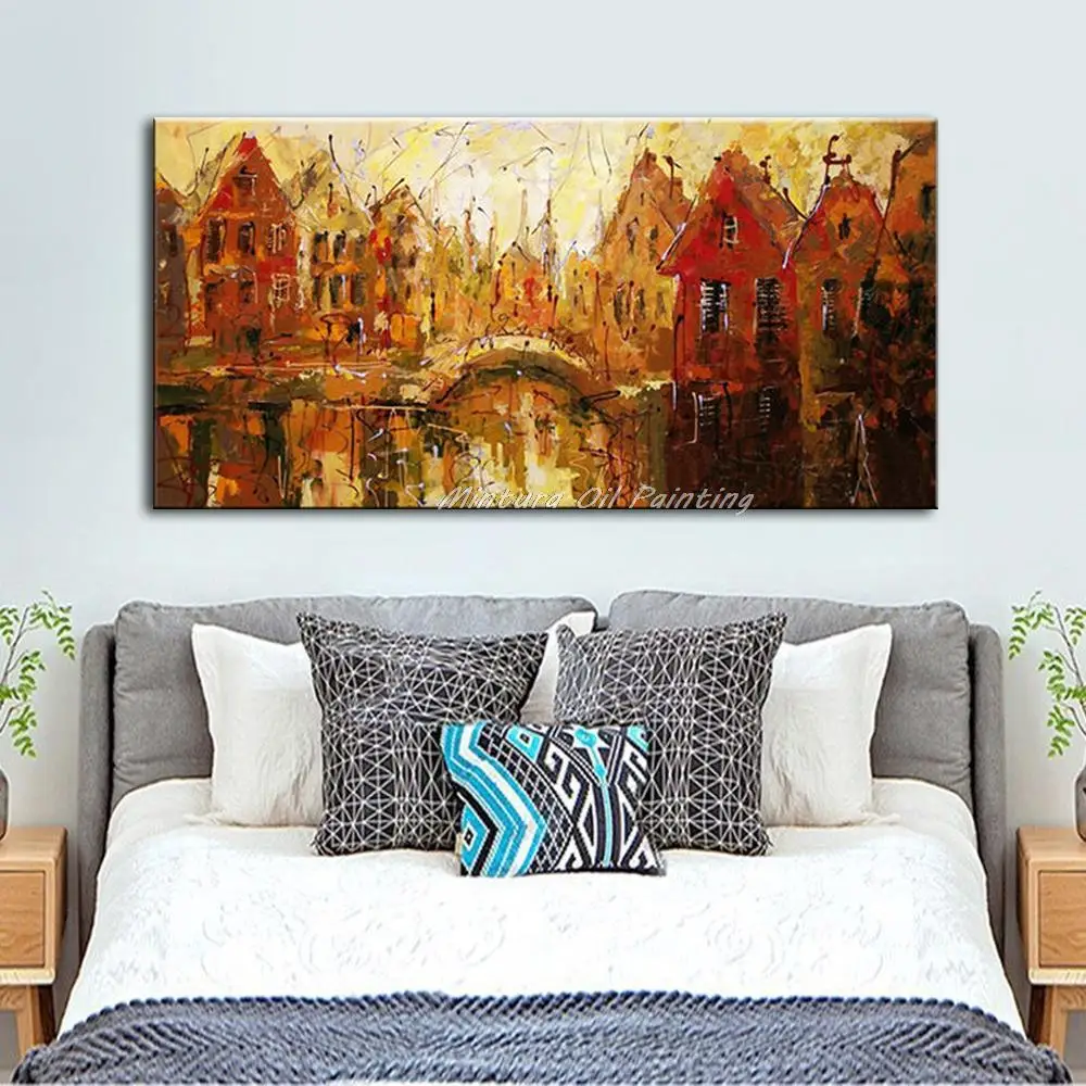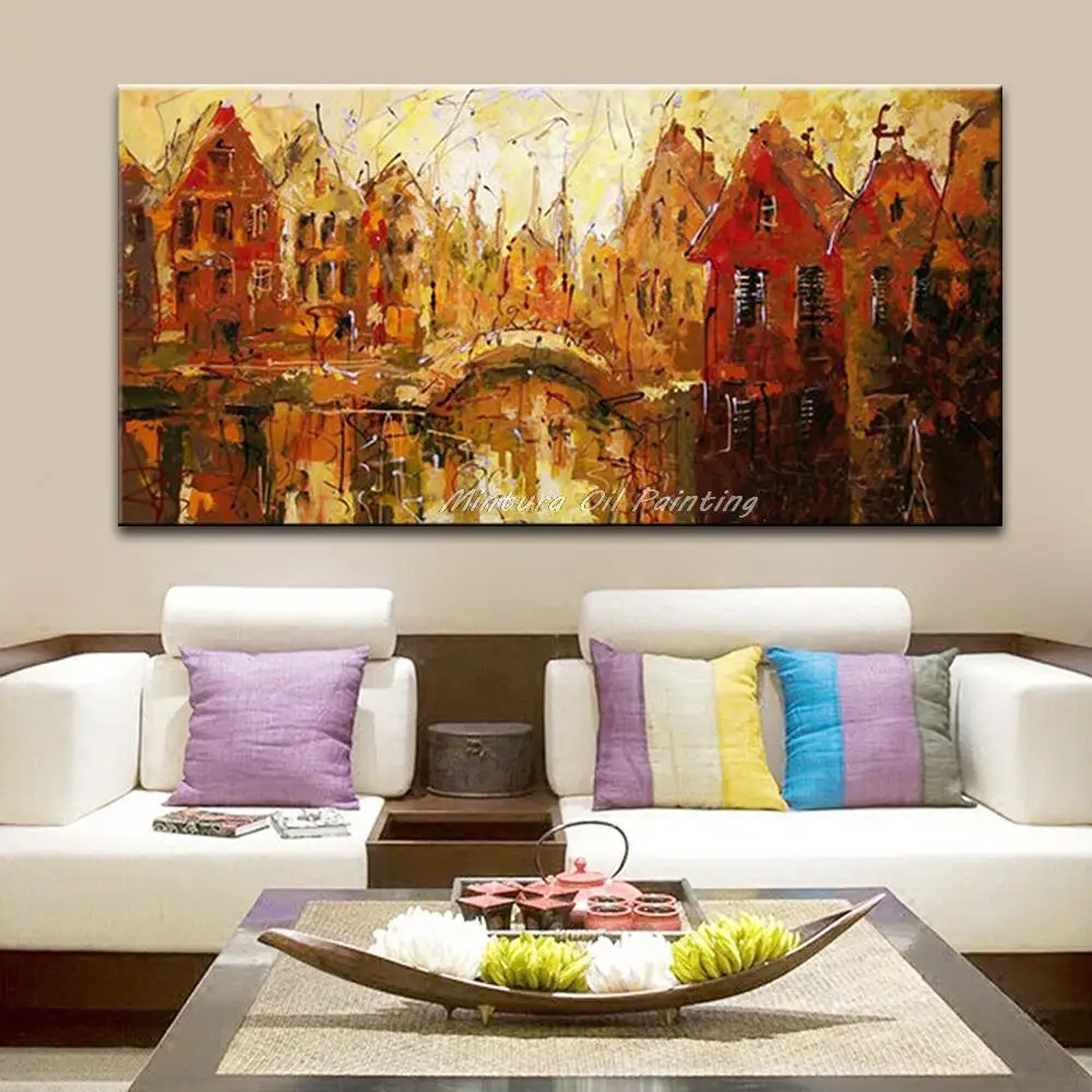 Новые картины, ручная роспись, Картина на холсте, домашний декор, современные настенные абстрактные Городские пейзажи для комнаты, картина маслом