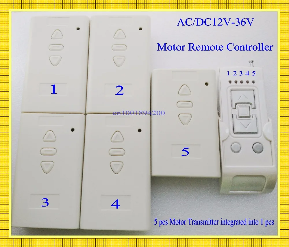 Мотор с дистанционным управлением, 12 В, 24 В, 36 В переменногопостоянного тока, беспроводной переключатель, 2 канала, 5 независимых моторов