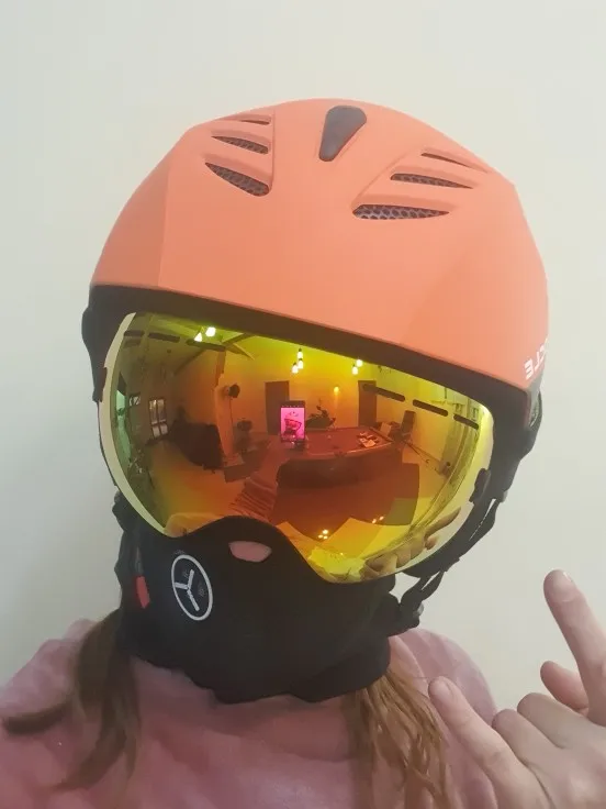 Шлем идеален, с сертификатами, чехлом и защитой лица. Он также приносит возможность закрыть вентиляцию с помощью вкладки на передней части шлема. Как описание продавца. Shipping was very fast and CAME very well Protected for shipping. 10 для продавца, я буду рекомендовать его своим знакомым, и я рекомендую его тем, кто ищет хорошее соотношение цены и качества шлема для лыжа или снега.