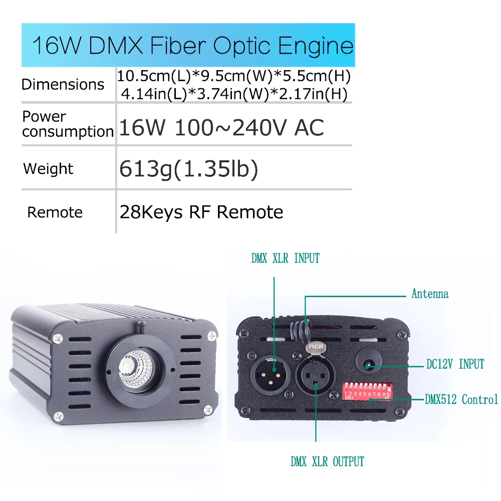 DMX 16W RGBW светодиодный волоконно-оптический двигатель RF пульт дистанционного управления для всех видов оптоволоконных кабелей потолочный драйвер освещения