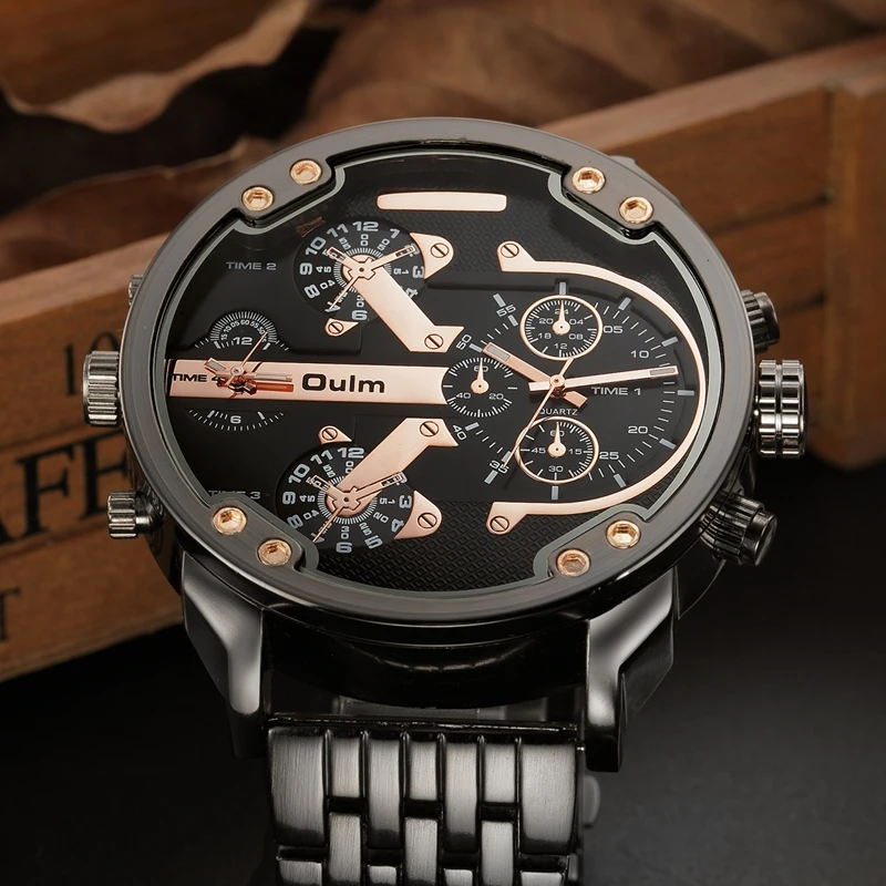 Oulm Мужские военные часы золотые часы большие кварцевые часы лучший бренд мужские полностью из нержавеющей стали наручные часы montre homme