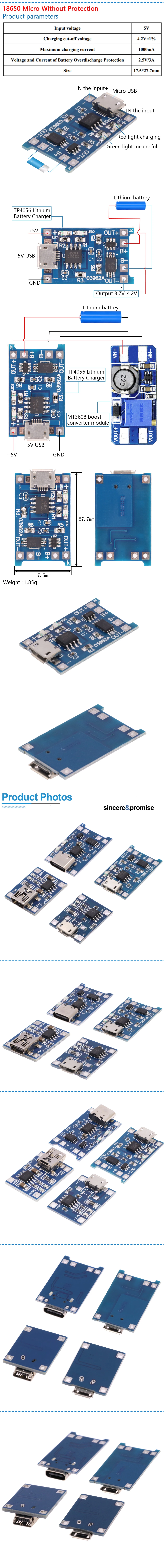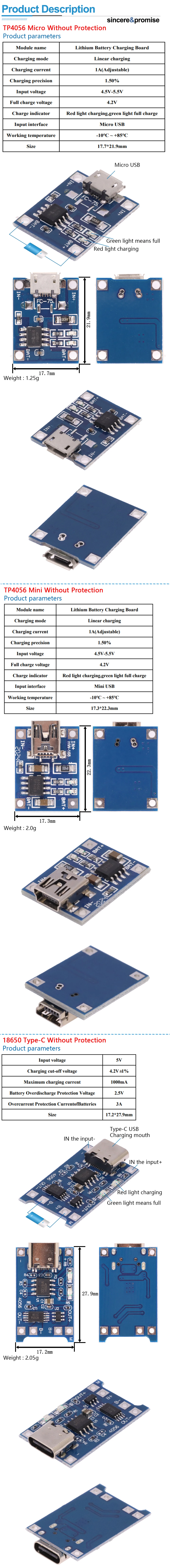 Зарядный Модуль TP4056, 5 шт.лот, Mini Micro USB Type-c, 5 В, 1A, 18650, литиевая батарея, зарядная плата с двойной функцией защиты