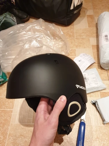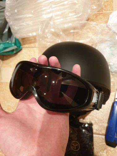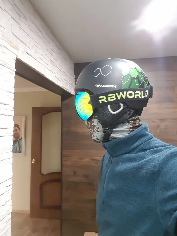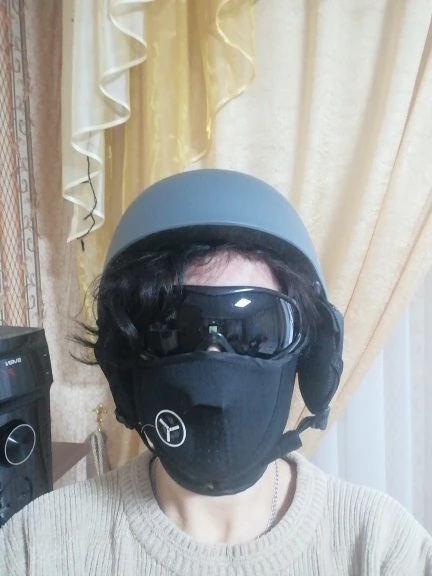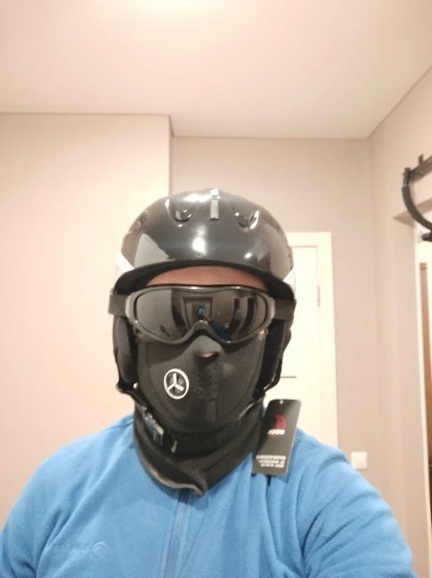 Шлем пришёл в сборной посылке, лежал почти 2 недели на таможне, что мне не понравилось. Сам шлем классный, сидит хорошо, можно регулировать. в основном крепкий пенопласт и сверху покрытие. Очень лёгкий. Внутри тёплый подшлемник, но на ветру через дырки вверху продувает, так что балаклава или тонкая шапка будет кстати. Очки можно сразу откинуть, бесполезные, хоть и неплохие, сидят не плотно, запатевают, лучше купить норм очки дополнительно а эти оставить на крайний случай. Маска хорошая, дышать легко и пар не задерживается. В целом я доволен