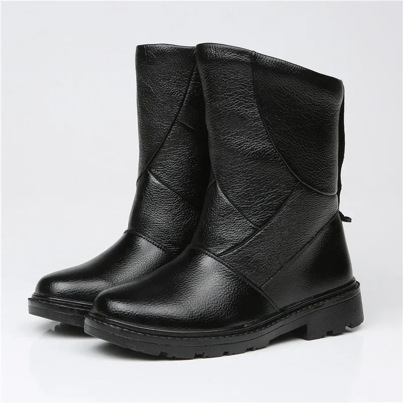 Мужские очень теплые ботинки из натуральной кожи, водоотталкивающие ботинки до середины икры, плюшевая хлопковая обувь для улицы, для зимы, 2019