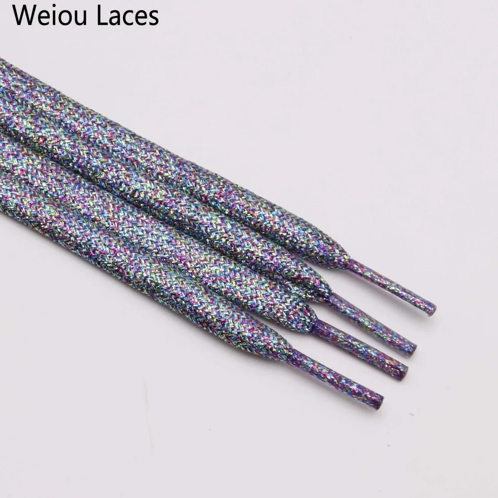 Блестящие плоские шнурки Weiou с металлическим блеском, блестящие шнурки для парусиновых кроссовок, спортивная обувь, бесплатная доставка