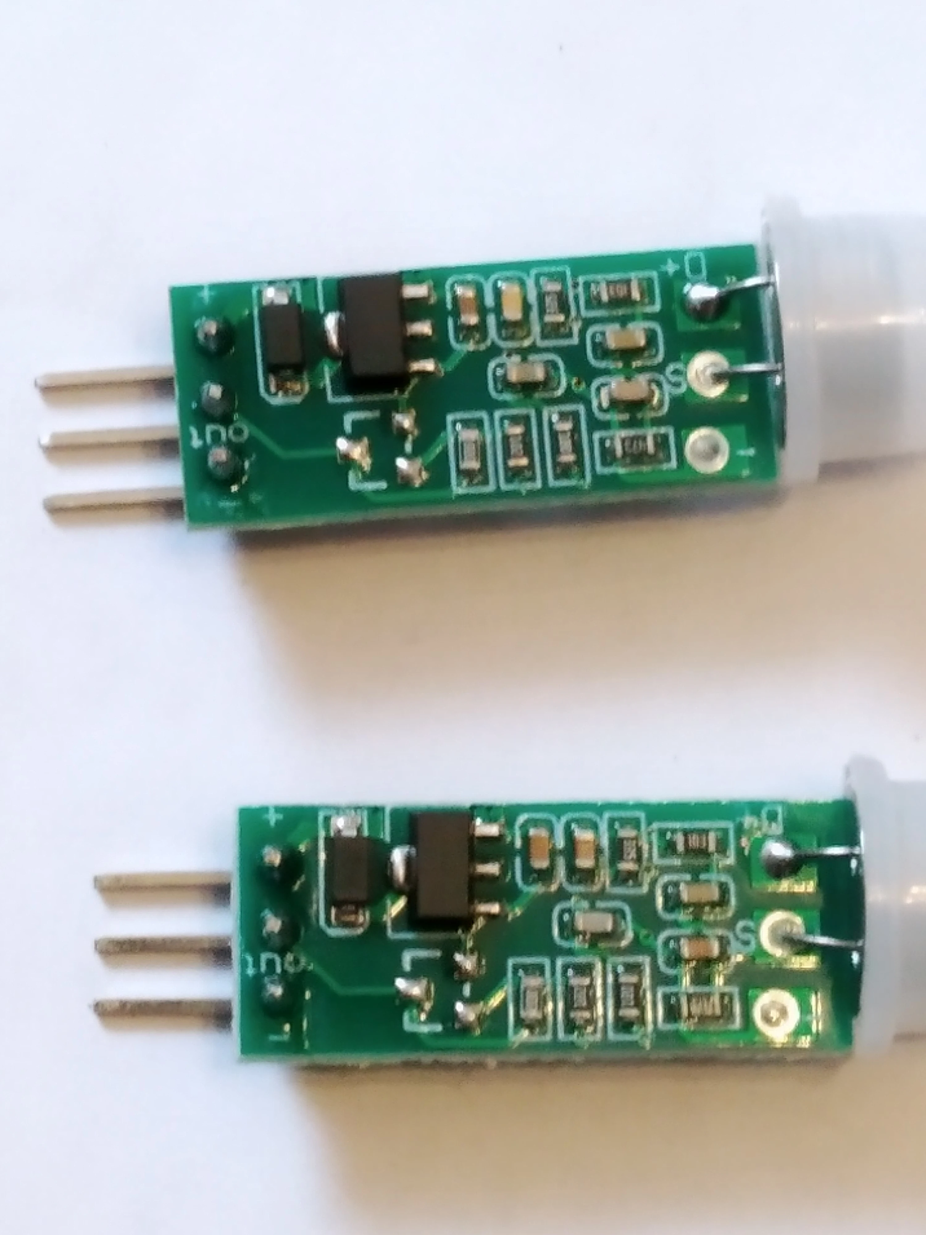 Неплохое качество. Вроде работают. До изделия пока дело не дошло, проверил на столе. Потребление примерно 30-40мкА, в среднем положении выдержка примерно 2мин, самое малое 2с, самая длинная примерно 3мин30с. Чувствительность не крутил, позднее по месту настрою. Рассеиватель не запаян, что неплохо по мне. Непонятного назначения два пина /под джампер?/ (пины не распаяны), маркировка RT. Если будет не лениво посмотрю при случае для чего такое. Маркировка пинов разъема скрыта линзой. Непорядок. На все ушло 38 дней, что для безтрека весьма неплохо. В ящик не лезло, пришлось пилить на почту. Каждый датчик в антистатическом запаянном пакете, поверх - почтовый пупырчатый пакет. С продавцом не общались. Купил бы снова, определенно! По соотношению цены и качества - абсолютный чемпион ($0.5 за датчик вкруг, в наборе из четырех)! ПРОДАВЕЦ, спасибо!
