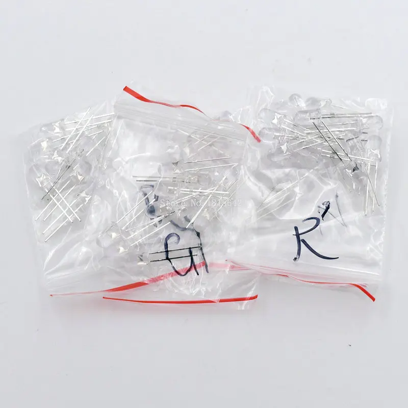 50 шт.лот, набор светоизлучающих диодов, прозрачный круглый, 5 мм, красный, зеленый, желтый, синий, белый, 5 видов каждого по 10 шт., оптовая продажа