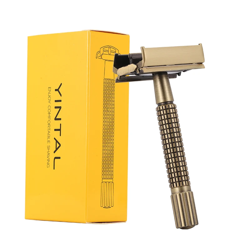 Сменная бритва YINTAL, латунная Мужская Безопасная бритва, классический бритвенный станок с двойным лезвием, ручка-бабочка с покрытием