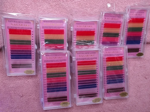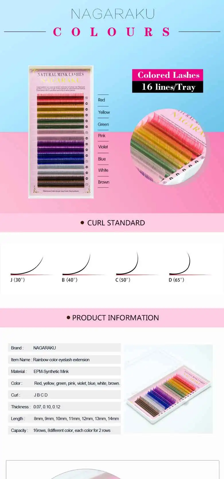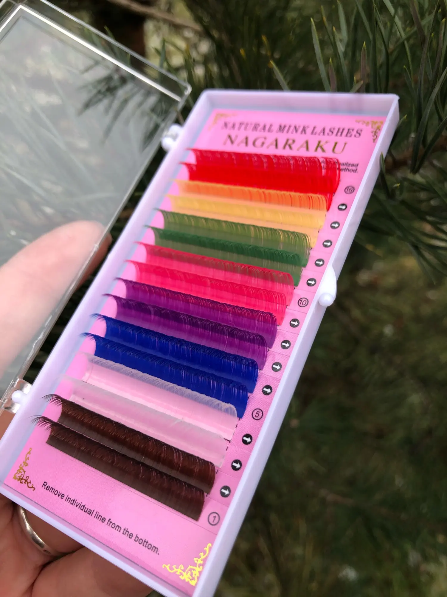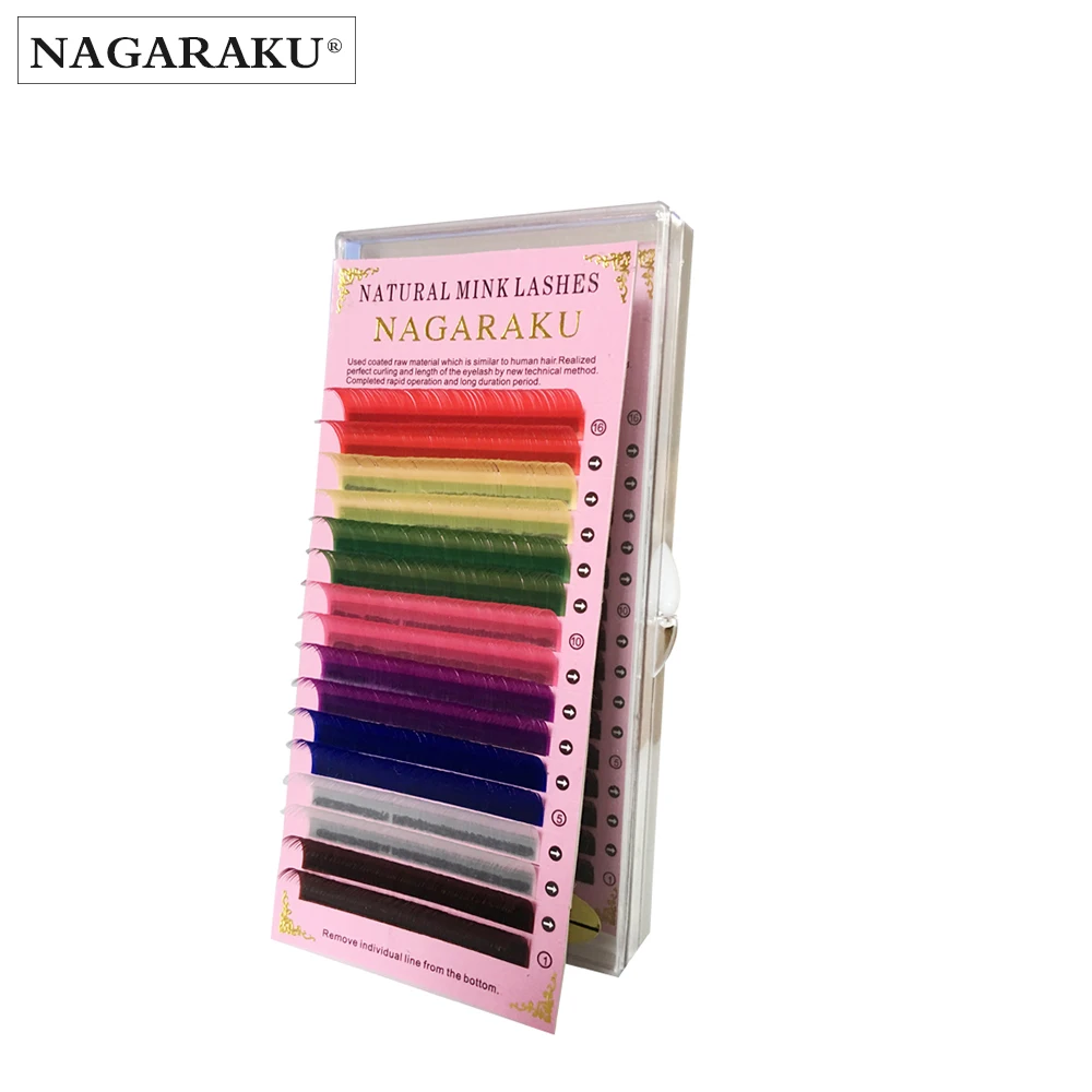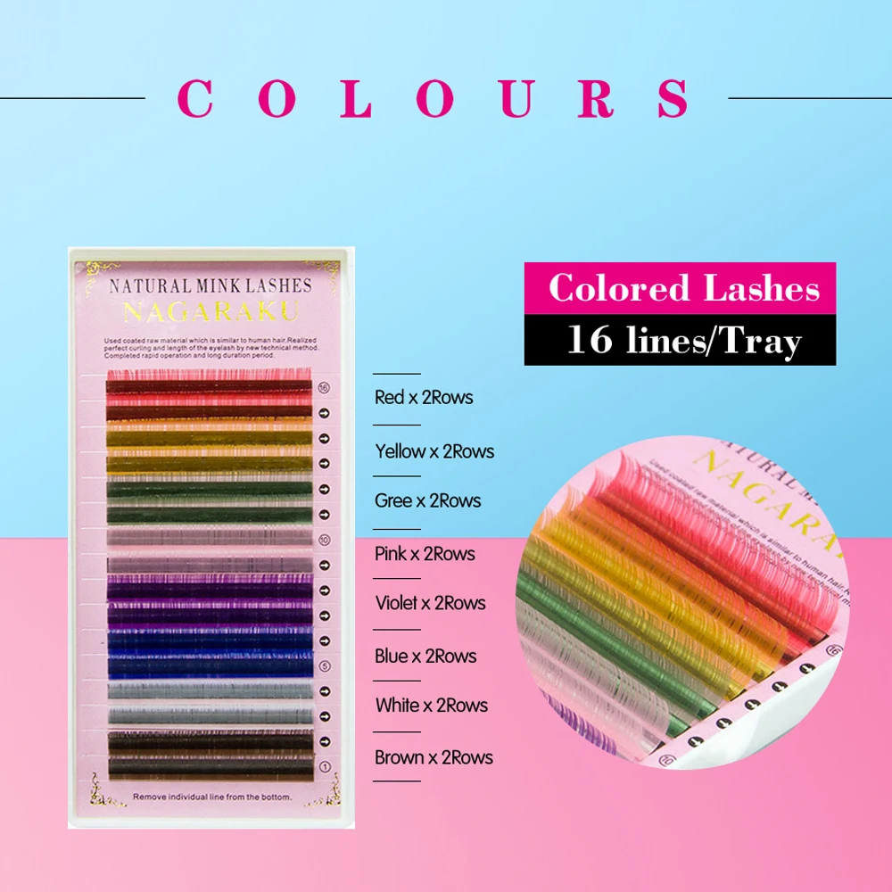 Ресницы для наращивания NAGARAKU, 16 рядов в лотке, 8 цветов, радужные, цветные ресницы, цветные ресницы наращивание ресниц