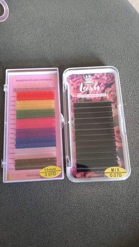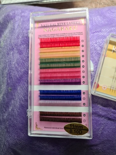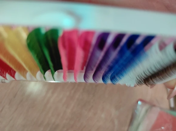 Ресницы понравились, яркие цвета, но тоньше чем с других фирм, думаю для работы пойдут, дошли быстро.