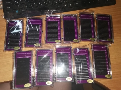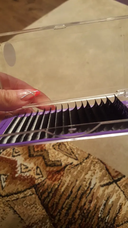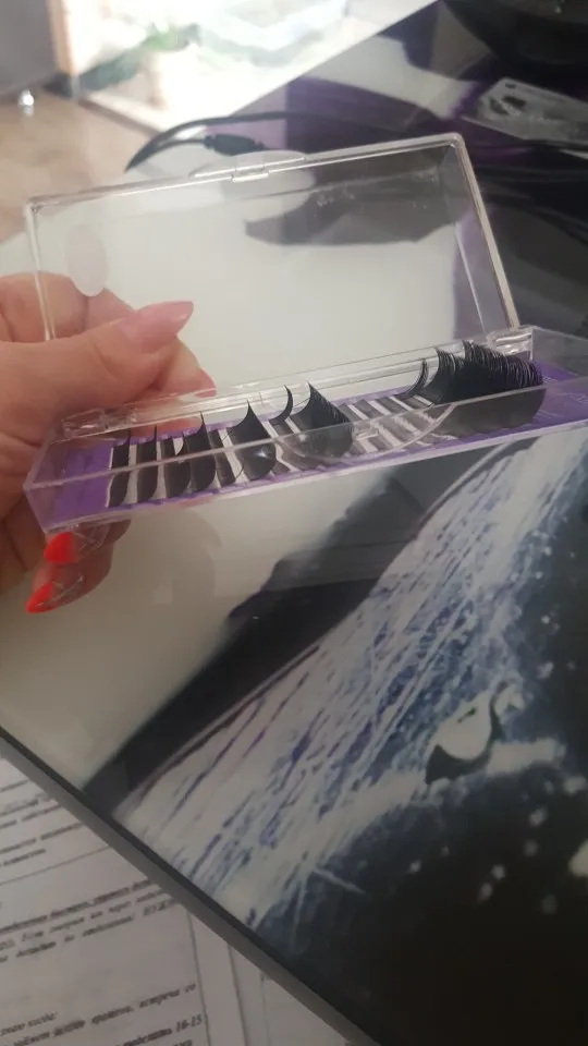 Доставка за 3 недели до Франции, реснички приятные, мягкие, я только буду учится наращиванию, поэтому ничего конкретного сказать не могу, заказала тоже другой фирмы у другого продавца, так вот разница огромная, те очень жёсткие и меняют форму если их сдать пинцетом, эти наоборот мягкие и больше похожи на натуральные, мне кажется что это шёлк или соевые... Незнаю, но они приятные на ощупь.