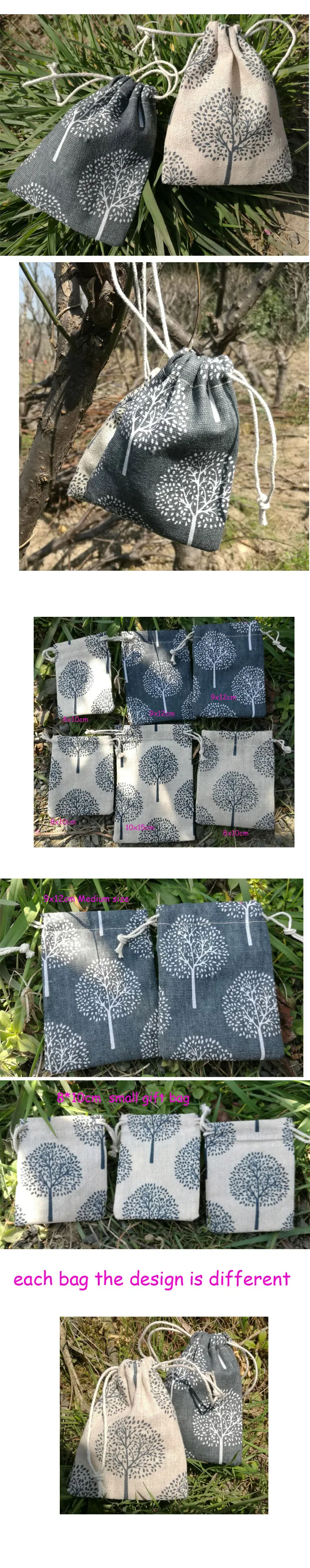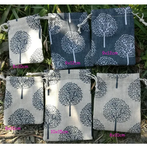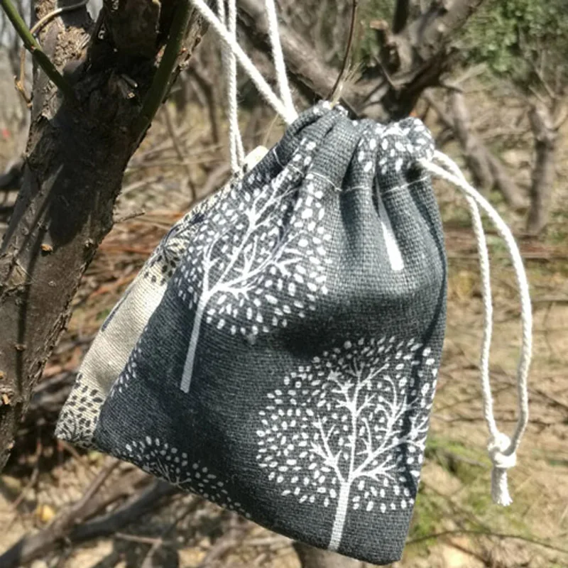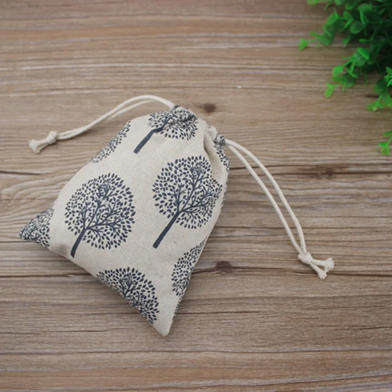 Льняные подарочные мешочки Happy Tree, мешок для ювелирных изделий 8x10 см 9x12 см 10x15 см 13x17 см, джутовые подарочные мешочки на шнурке для макияжа